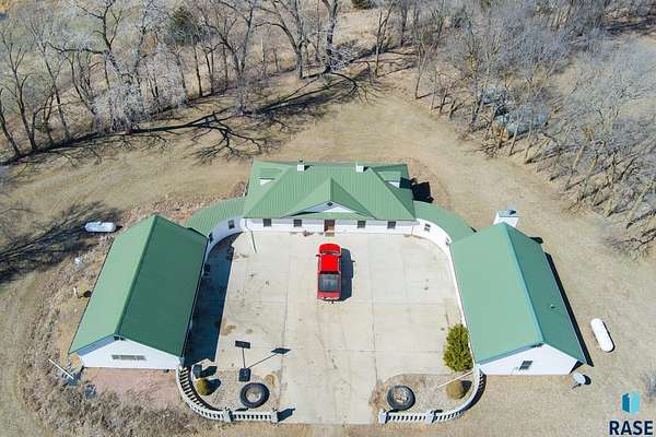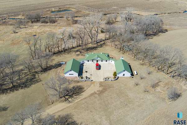 Situated on over 35 acres of peaceful South Dakota countryside, complete with a meandering creek, this exceptional ranch-style home in Centerville offers the perfect balance of spacious living and rural charm. A grand front courtyard greets you upon arrival. Built in 1994, this 3,076-square-foot single-family home features 3 bedrooms and 3.5 bathrooms, providing ample space for family and guests. Adding a unique historical touch, the property includes the Albert T. Paulson barn, a landmark that enhances the estate's character. The expansive acreage offers endless possibilities for outdoor recreation, gardening, or agricultural ventures. With fenced pastures and a location on a blacktop road, this property is ideal for farmers, homesteaders, or anyone seeking a private retreat with agricultural potential in the heart of South Dakota's rich farming region.