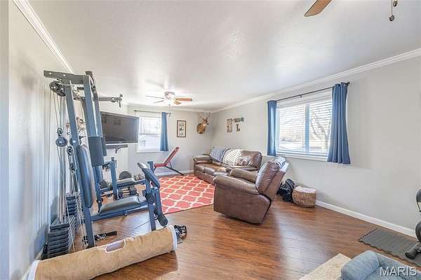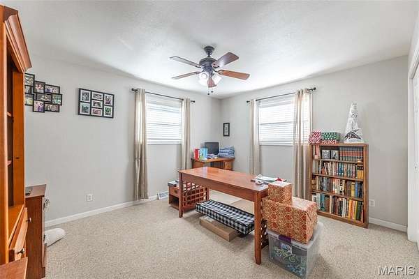This very cute and well-maintained 3-bedroom, 2-bath home is tucked away at the end of a quiet dead-end street, offering both privacy and charm. The exterior features classic gray brick complemented by low-maintenance vinyl siding. Inside, you'll find large, comfortable rooms throughout, including a cozy dining room highlighted by a beautiful fireplace--perfect for gatherings and everyday enjoyment. The property also includes an impressive 62' x 20' equipment shed out back, providing ample space for storage, hobbies, or projects. An additional shed with a fenced-in area adds even more versatility. This home combines peaceful living with functional outdoor space, making it a wonderful place to call home. Don't miss out on this charming home. Call today before it's gone tomorrow!
