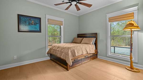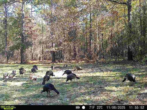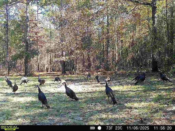 The land offers a mix of hardwoods and pine timber, with portions of the pine plantation selectively cut in years past. Prescribed fire has recently been reintroduced to reduce unwanted vegetation and promote native habitat and forb growth across the property. There are nine established food plots, each equipped with a FatBoy blind and feeders, supporting a year-round feeding program designed to grow and sustain quality deer and turkey populations.