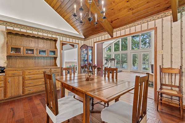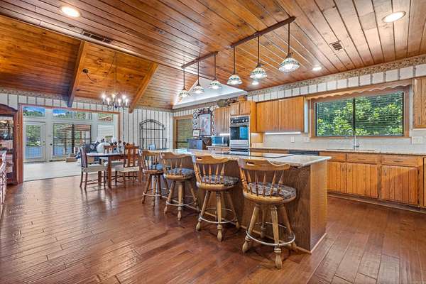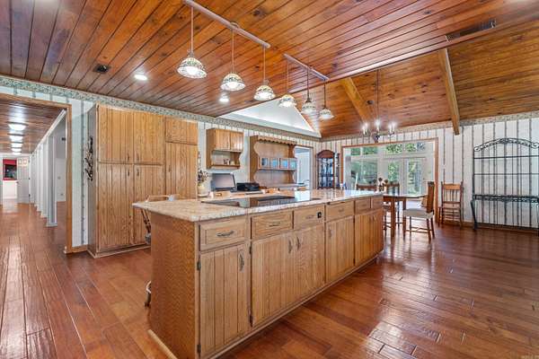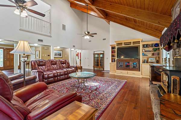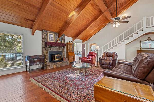 This beautifully updated Lake Hamilton home is set on 150 feet of prime lake frontage with a seawall, 75-foot boardwalk, and private boat dock. Over the last year, major improvements include a new roof, siding, gutters, windows, and fresh paint, making this home move-in ready and worry-free. Enjoy year-round comfort with a top-tier air purification system (REME HALO), commercial-grade Ultra Aire whole-house dehumidifier, and additional filtration systems. Step inside to a spacious great room with 20' soaring wood ceilings, rich hardwood floors, and a stone fireplace with Buck Stove insert. The large primary suite includes a sitting area, lake views, and private access to a concrete patio overlooking the water. The home features two remodeled tile bathrooms, a formal dining room, and a well-appointed kitchen with breakfast bar, wet bar, and eat-in area. Entertain with ease in the 20x30 game room. Upstairs, you'll find two generously sized bedrooms connected by a Jack-and-Jill bath, plus a floored walk-in attic for additional storage. Other highlights include a new 14x24 lakeside pavilion, a 12x24 side deck, laundry room, and a private office just off the kitchen. Agent is owner.