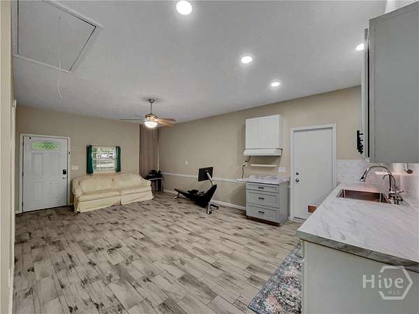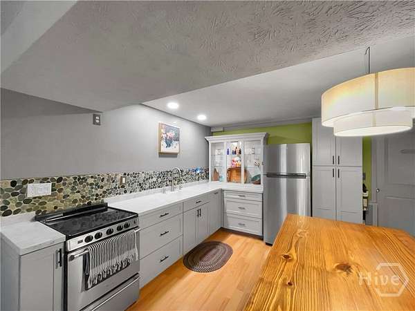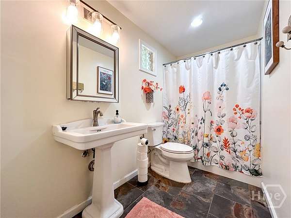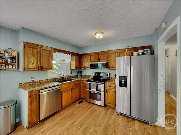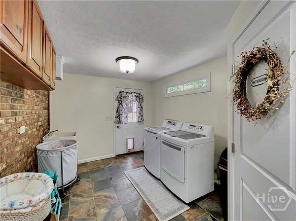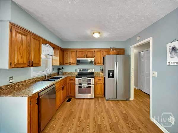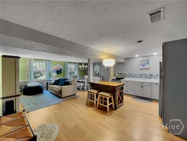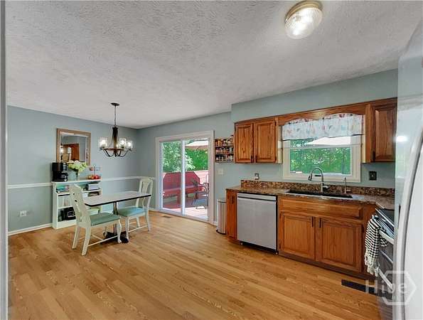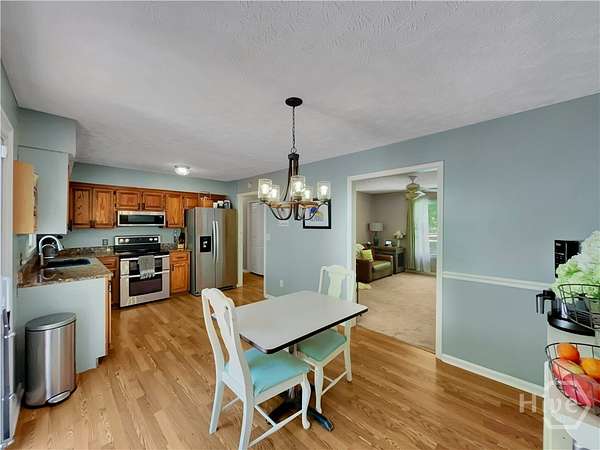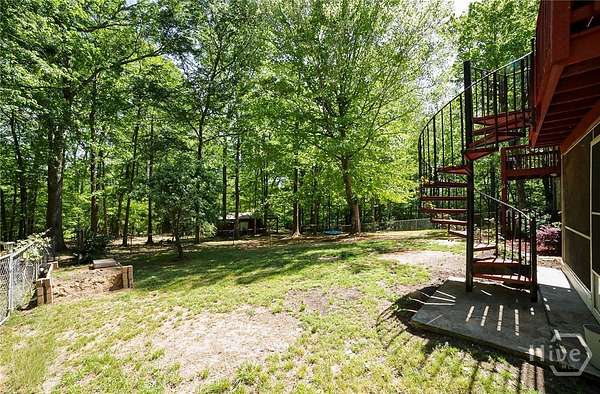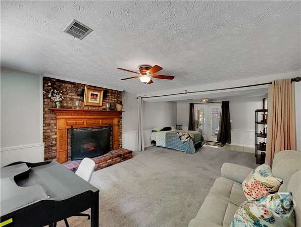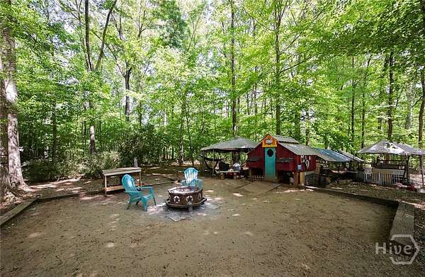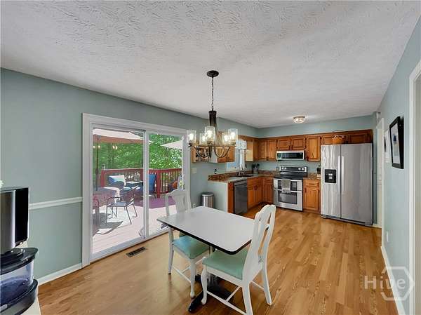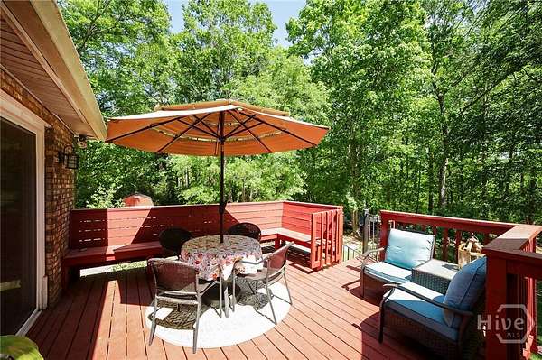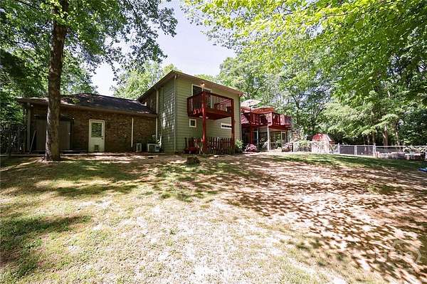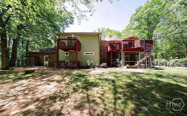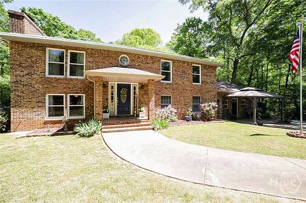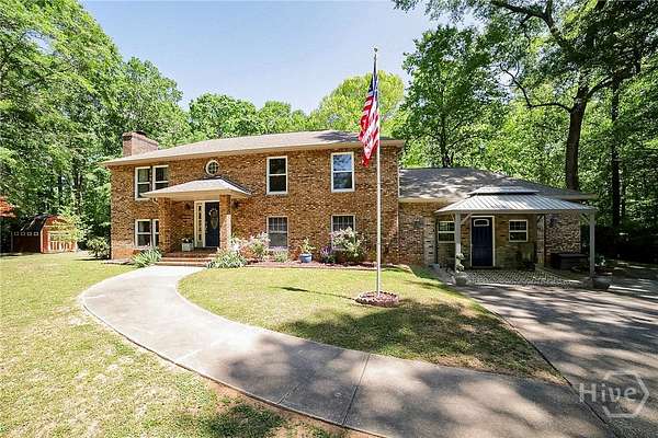 WOW - This spectacular retreat is back and better than ever. Situated on 4 sprawling, wooded acres in a quiet cul-de-sac along the Hudson River, this stately brick home offers a rare opportunity with multiple living options, where distinction and charm shine throughout. From the moment you arrive, the stunning setting makes a lasting impression, while the split-level design provides abundant and flexible living possibilities. DETAILS: *5 Bedrooms / 5 Full Baths *3,380+/- SQ.FT. *Year Built: 1988 *In-Law Apartment. SPECIAL FEATURES: -Extensively renovated throughout, with 3 separate living quarters complete with living and dining spaces, and kitchens -Updated Bathrooms -ALL NEW windows -Updated Electrical and Plumbing Systems -NEW gutters -Wood-burning fireplace -Decorative light fixtures --2" blinds -Laminate, Tile flooring -Tons of Storage Options. FLOOR PLAN: -Designed with a split-level layout, this home offers versatile and flexible living arrangements. -Welcoming, Split-level Foyer. -Formal Living Room with carpet flooring and picture window. -Eat-in Kitchen reconfigured removing a center wall to create a spacious, sunlight dining space completely open to the Kitchen. Sliding Glass Doors lead to the rear deck. -The kitchen features granite countertops, stained cabinets, laminate flooring, and a complete appliance package. APPLIANCES: ~Stove/Double Oven Combination ~Dishwasher ~Refrigerator ~Vent-hood Microwave. BEDROOMS/BATHS: -The main level hosts three cozy bedrooms grouped together down the hall, each with ceiling fan light fixtures and generous closet space. -The Hall Full Bath is updated with new tile floors, decorative vanity, updated lighting and new garden tub. -Reimagined, the oversized Owner's Suite now offers an addition featuring a sitting area, 6x10 closet, private deck, and a renovated ensuite bath with custom vanity and upgraded tile shower. LOWER LEVEL: 2 Suites with Living Quarters. -SUITE 1: Oversized, private living area, wood-burning fireplace, carpet flooring, private access to the screened porch, and updated full bath. -An oversized recreation room offers endless possibilities for entertaining or flex space. The layout has been redesigned, offering a spacious dining area with custom chandelier, media space, upgraded kitchen with custom cabinets, **quartzite countertops with pebbled stone backsplash, and stove/oven combo. -Laundry Room/Mud Room with storage closet, rear yard access, and a Full Bath. SUITE 2/In-Law Apartment: -Private front entry with covered patio porch. -Open layout with spacious Living Room and Kitchenette space with sink. -Tile Floors. -10Ft. Ceiling. -Bedroom with spacious closet. -Full Bath featuring a tiled shower. The in-law suite is a potential income producing unit! EXTERIOR: ~Newly Extended Open-air deck with built-in bench seating. ~Newer Screened Porch. ~Spiral staircase connecting to the lower living areas and yard. ~Fenced Rear Yard ~Chicken Coop. ~Garden beds ~2 storage buildings ~Oversized, 20x30 powered workshop with dual garage doors, climate control and covered 10x20 front porch ~Fruit-producing Peach Tree, Apple Tree, Muscadine Vine and Blackberry Bushes. ~Over 700+/- Feet River Frontage. EXTRAS: -Brick and Hardiplank Exterior. -Private Well (for outdoor watering) and septic tank. -All-Electric Systems. LOCATION: -7 minutes to Hwy. 441. -Within 6 miles to Banks Crossing shopping, I-85 and Tanger Outlets. --22 miles to Athens. A rare combination of acreage, unique living opportunities, and modern updates offers unmatched flexibility that sets this home apart.