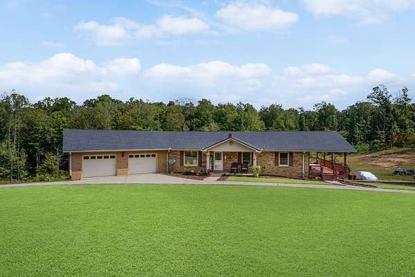 One-of-a-kind property in the heart of Waverly! This full brick home offers over 2,400 sq ft of living space with 5 bedrooms, 2 full baths, and a fully finished walkout basement. Perfect for large families or multi-generational living. Nestled on 9+ private acres, you'll love the peace and quiet along with plenty of room to roam. Enjoy mornings or evenings on the extra large covered deck overlooking the property that is ideal for relaxing or entertaining guests. Inside, you'll find multiple living areas, a basement bar, and abundant storage. Recent updates include a newer roof, HVAC, and water heater, plus high-speed fiber internet for work or play. Outside, the property features a circular drive with gated entrance, huge garage, outdoor storage building with power and beautiful landscaping with a fountain. No HOA, just country living at it's best. This home combines privacy, space, and convenience. Don't miss your chance to own this rare find in Waverly.