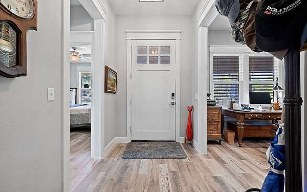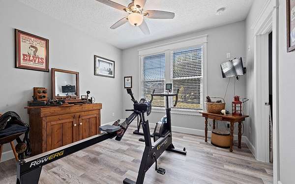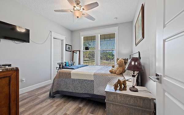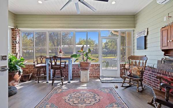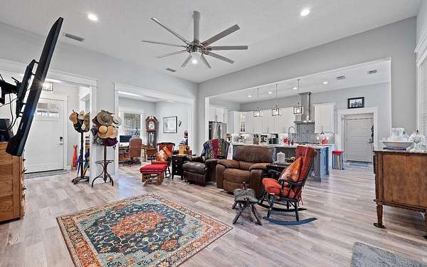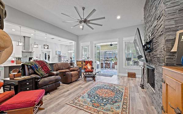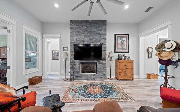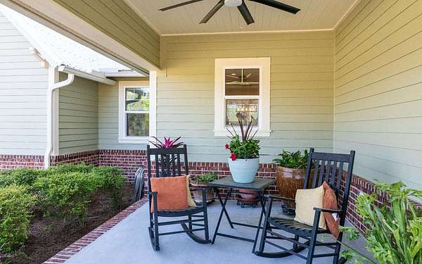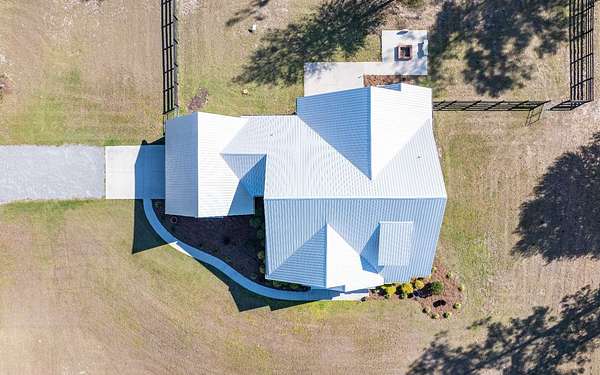 Stunning 3/2 Craftsman style home with large front porch that sits on almost 3 acres up on a hill with beautiful oaks with an amazing view. This home features 9', 10', 11', & 12', ceilings, gas fireplace with stone, large open kitchen with island & porcelain farmhouse style sink, gas stove, gas tankless water heater and PGT windows. Through the French doors of the living room is a sunroom that has air conditioning & can be used year around for enjoying the gorgeous backyard. Outside from the sunroom is a nice back porch with a brick fire pit for enjoying those cool evenings with family & friends. If you need a little extra space there is a flex room that can be used for an office or guest that has a half bath, electric fireplace, recess TV area. The home is spray foam insulated, highly efficient, 250 gallon gas tank in the ground, underground power to the home & whole house rain gutters. The property is nicely landscaped & the exterior of the home has hardy plank siding with brick trim all the way around the entire house giving it a stunning finished look. The back yard is fenced and has a 30x50 metal building that is color coordinated with the home. The metal building sits on a concrete slab with (2) 12x12 rollup doors, a side door and roof is insulated. There is also a quaint little building that would be great for pets or extra storage. Home also comes with a water softener. Call/text to schedule your private showing today.