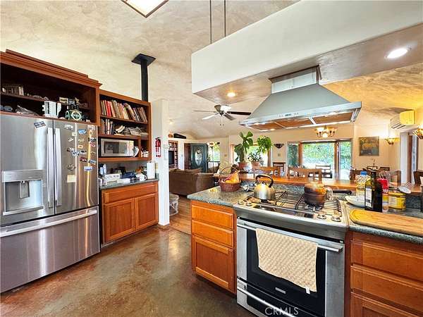 Imagine yourself living in this extraordinary, one-of-a-kind subterranean home nestled on 23 private acres, just five minutes from town. This serene retreat offers the perfect blend of seclusion and convenience, with a year-round pond, a wisteria-covered patio framed by sweeping mountain views, and your own mature fruit trees. Upgrades abound, from locally milled stone floors and a handcrafted bar to high-end custom cabinets and premium appliances. Built into the earth, this underground home naturally maintains a consistent, comfortable temperature in every season cool in the summer, warm in the winter while multi-zone radiant heat flooring and a cozy wood stove add extra comfort on cooler days. Expansive windows capture the beauty of the surrounding landscape, filling the home with natural light and breathtaking views. Designed for true self-sufficiency, it is fully off-grid, powered by a robust solar system and supported by a rare prolific well, bringing you modern comfort without reliance on the grid. Whether you're relaxing in the stable, climate-controlled interior or enjoying the tranquil outdoor spaces, this property delivers the ultimate in sustainable, luxurious country living.
