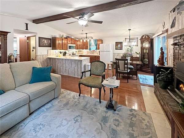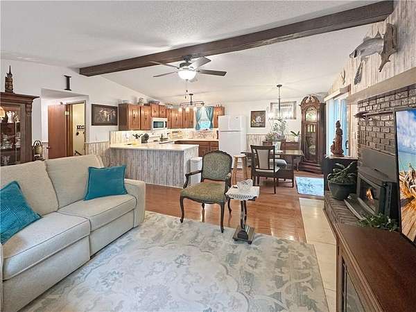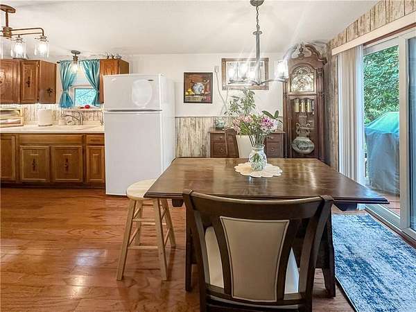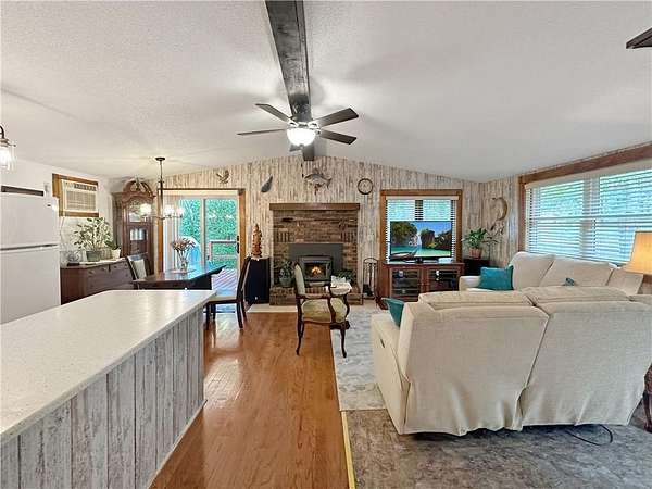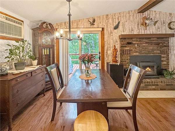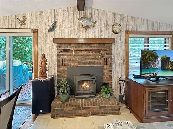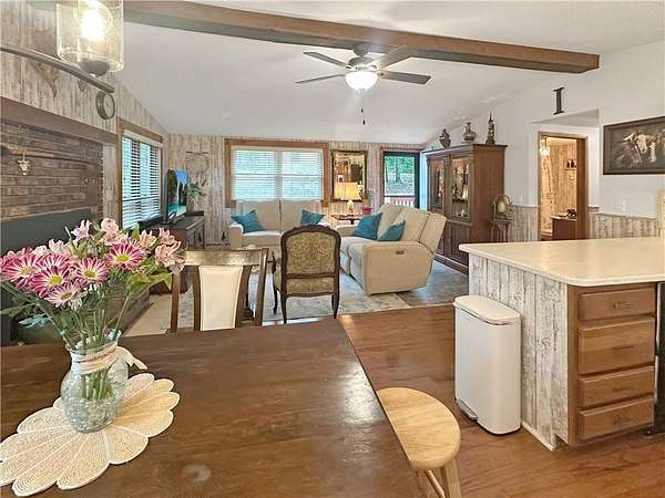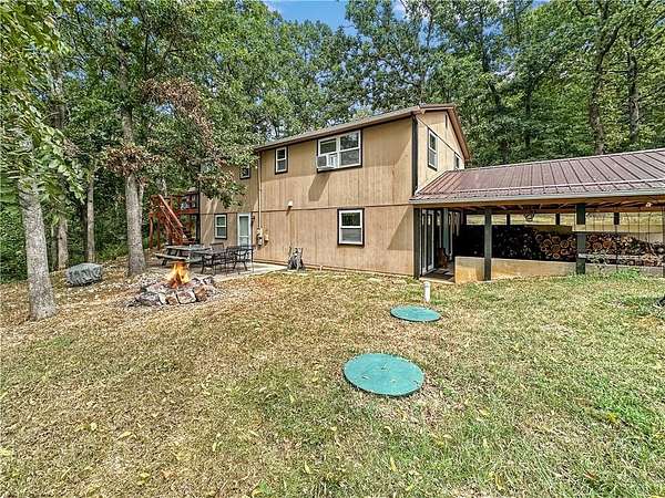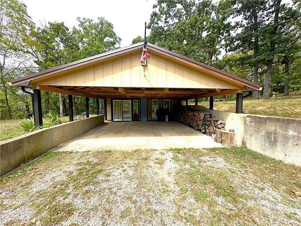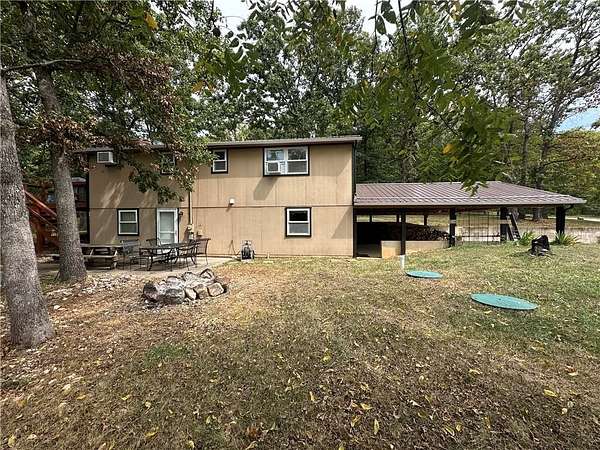 Discover your lake retreat in Edwards, MO! This updated home sits on approx. 3 +/- acres with a natural setting and seasonal Lake of the Ozarks views. Thecommunity boat ramp is just steps away-perfect for fishing and lake fun! Recent upgrades make this 2 bedroom home move-in ready: freshly staineddecking, two remodeled bathrooms with a heated jetted tub featuring lighting and waterfall features, an updated kitchen, living room, and hallway, plus abrand-new septic system. The full walk-out basement offers a second kitchen, a non-conforming 3rd bedroom, a full bath, and a large storage area with twosets of French doors and a back entry-easily finishable for extra living space. Enjoy the landscaped yard, cozy firepit, patio, and plenty of deck space forBBQs. Parking is abundant with a 2-car carport and a detached 4-car garage with pull-through doors, workbenches, and storage shelves. With its privatesetting, generous acreage, and space to grow, this property is a rare find!