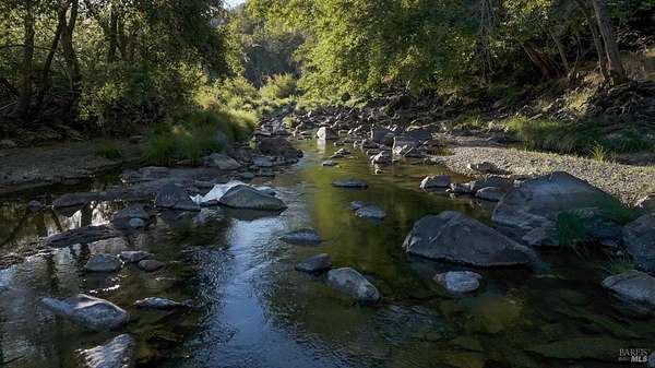 Alexander Valley Ranch "Rancho Casla-Mayomi", 2,258 +/- acres consisting of 3 legal parcels. 5 min to Hwy 101. Sweeping hilltop meadows in the Alexander Valley Appellation, pristine distant mountain vistas, breathtaking views of the patchwork of the Alexander Valley vineyard floor. 150 +/- acres potentially suitable for prime Mountain Cabernet vineyard land at 1,600 +/- ft elevation. Thousands of feet of frontage on a spectacular year-round creek with deep swimming hole. This creek supports steelhead! There is abundant wildlife. Historically this was a hunting Ranch for Generations. Deer Turkey Quail and Wild Boar with diverse incredible flora and fauna. Magnificent Heritage Oaks, Madrone, Buckeye, Redwoods, & Fir forests. Springtime purple lupine & red clover meadows. Giant bracken ferns. A very rare opportunity! 20 minutes to town of Healdsburg.
