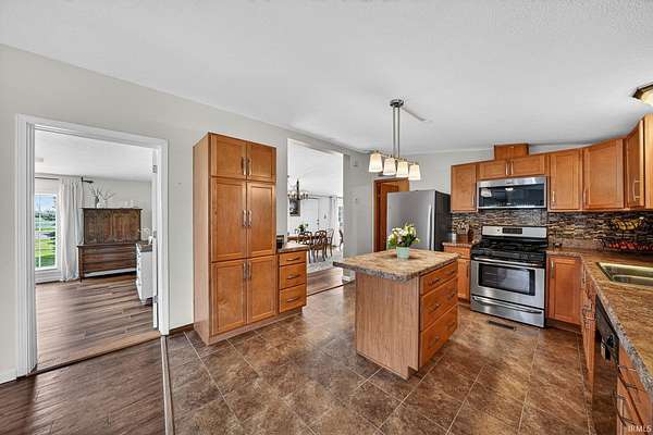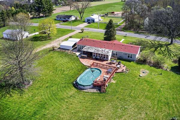 OPEN HOUSE THIS WEEKEND 4/19 FROM 11AM-1PMAmazing 4 bedroom, 3.5 bath ranch with a full, finished basement sitting on 5.18 acres of land. Feels like you're out in the country but close to everything! Enjoy the luxury wood plank and tile flooring throughout the entire main floor. Four nice sized bedrooms, and three full and one half baths, laundry/mudroom which includes a top of the line Electrolux washer/dryer set. The large kitchen flows into a family room with a corner, wood-burning fireplace to create a comfortable space for entertaining. Three season room, back deck and pool deck looking over the fenced yard. Specialty chicken coop with space for 10 chickens, garden full of fruit (grapes, strawberries, blackberries, raspberries, apples and pears) plus an oversized pole barn with 9 horse stalls. Store a boat or RV. Start your own small farm or lease the acreage to a local farmer! The possibilities are endless!