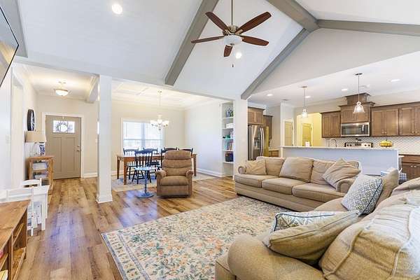 Nestled in a quiet, well established neighborhood, this beautifully maintained home offers the perfect blend of comfort and convenience. Lovingly cared for, this one owner home is truly move-in ready and ideal for someone looking for space to grow and room to gather. Step outside to a large backyard, perfect for kids, pets, entertaining, or simply relaxing. The backyard backs up to a wooded forest that offers privacy and wildlife. If you are searching for a home that combines, tranquility, functionality, and charm, this one checks every box. *AC Replaced in May 2024, *Septic pumped in March 2025, *custom Murphy Bed and built-ins in the guest/office space, *neighborhood park, *coffee bar, *County School System, *security system with AlertTech, *fenced in backyard, *sprinkler system, and MUCH more!