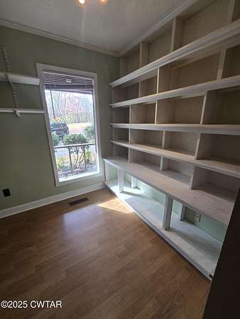 - Beamed Ceilings, Bookcases, Breakfast Bar, Butcher Block Counters, Ceiling Fan(s), Double Vanity, Eat-In Kitchen, Fiber Glass Shower, Open Floorplan, Pantry, Walk-In Closet(s)