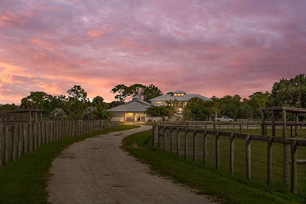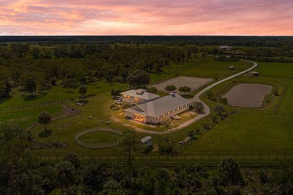 Positioned on 21.59 acres between Jupiter and Hobe Sound within the gated 41-parcel equestrian community of Trailside, this property offers a rare opportunity in an area where large acreage is increasingly limited. Trailside is known for its private, peaceful setting, spacious 20-30 acre parcels, and access to nearby riding and nature trails-all within a short drive to beaches, golf, and conveniences. Currently configured as a turnkey equestrian property, the property includes over 7,000 sqft of 2020-built CBS construction, featuring a well-equipped 13-stall center-aisle barn and two-story living quarters. A designated homesite with underground power allows for a future main residence, while existing improvements, including reverse osmosis to the home and paddocks, a generator, and quality infrastructure, support immediate use as a private retreat or working equestrian estate. The grounds are fully fenced and cross-fenced with multiple paddocks, a lit arena, round pen, and a mile-long riding trail. The surrounding area continues to see growth with new luxury golf courses and private club communities, while remaining nearby to Jupiter and Hobe Sound.