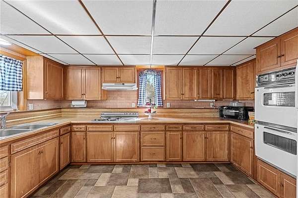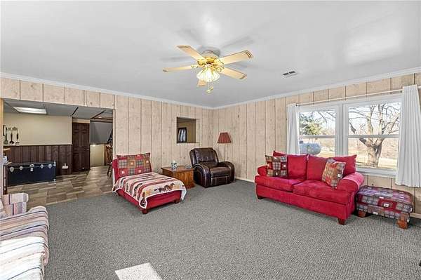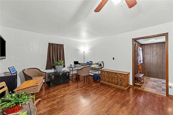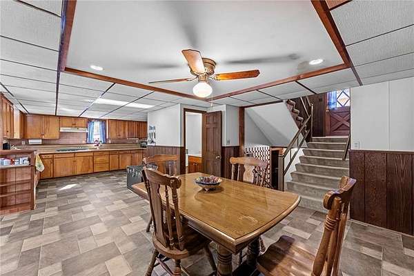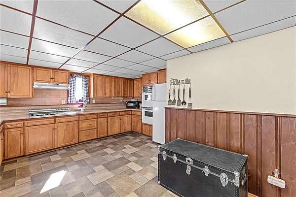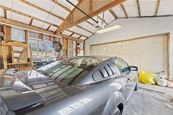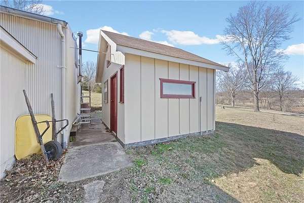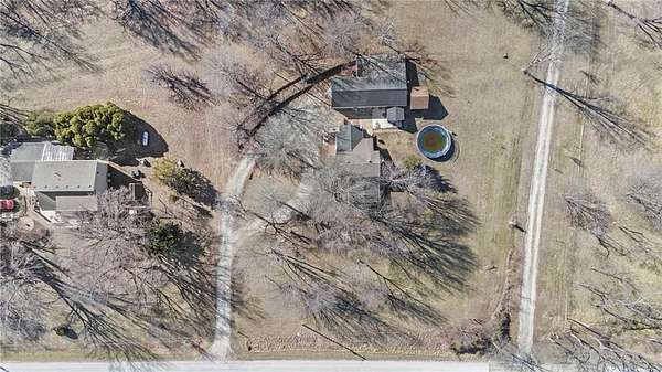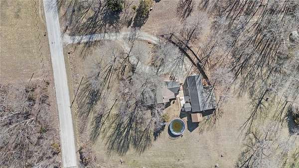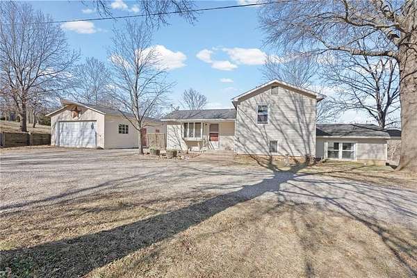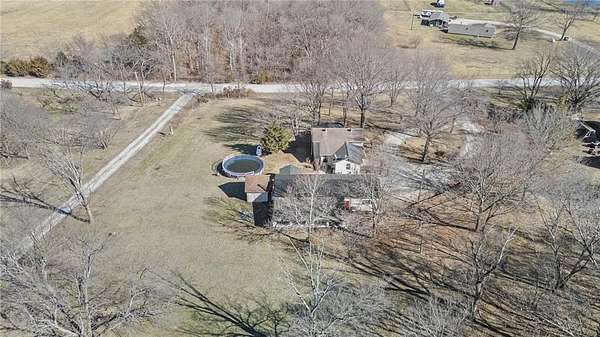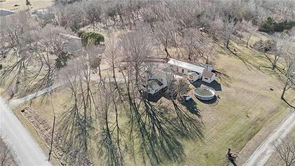 Perched against a serene hilltop wooded backdrop, this charming 3 bedroom retreat offers the perfect blend of country privacy and modern convenience on 6.33 expansive acres. The heart of the home is a spacious eat-in kitchen featuring an abundance of cabinetry for effortless organization, flowing seamlessly into a large, inviting family room designed for memorable gatherings. The thoughtful layout includes a convenient main-floor bedroom, while the upper level houses two additional bedrooms and a full bathroom. You can enjoy true peace of mind thanks to several high-ticket updates, including a brand-new septic system, newer windows, a durable roof, and maintenance-free vinyl siding. Beyond the living quarters, the property is a hobbyist's dream, boasting a two-car garage paired with an impressive attached workshop featuring solid concrete floors. For those seeking a private getaway, the adorable "She-Shed" comes fully equipped with electricity, offering a quiet space for creativity or relaxation. Outdoor living is equally spectacular, whether you are entertaining on the lovely patio, enjoying the vast yard, or cooling off in the above-ground swimming pool. Situated on a paved road just a short drive from the historic charm of Paola and the recreational beauty of Hillsdale Lake, this estate is a haven for nature lovers where deer and turkey are frequent visitors. This property represents a rare opportunity to own a turnkey piece of paradise that balances rural tranquility with easy access to local amenities.