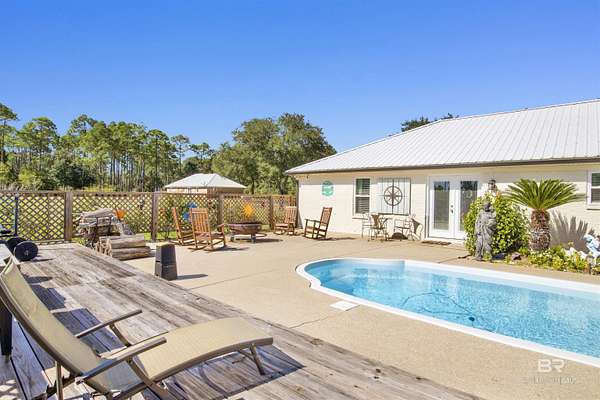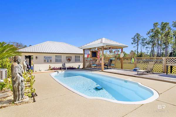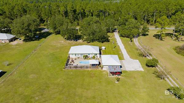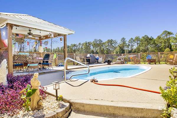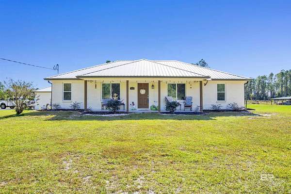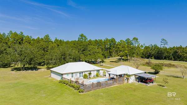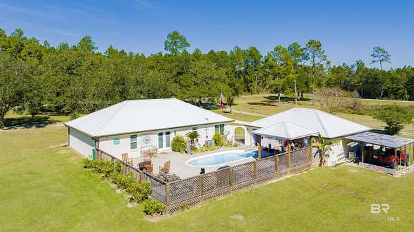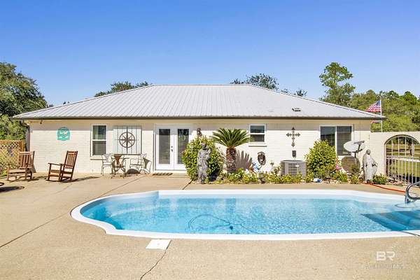 Experience modern country living at its finest on 3 peaceful acres off Archie Road in Elberta. This beautifully updated 3-bedroom, 2-bath home blends fresh modern style with relaxed Southern charm. Inside, you will find gorgeous tile flooring throughout, an open and airy floor plan, and tasteful updates that give the home a fresh, move-in-ready feel. Step outside to your own private retreat featuring an inviting in-ground pool, perfect for enjoying sunny days and entertaining family and friends. A detached 2-car garage and covered carport provide added convenience and plenty of space for vehicles, storage, or hobbies. With room to roam, garden, or simply enjoy the peaceful surroundings, this property offers the ideal balance of quiet country living and easy access to local shops, schools, and the beautiful Alabama coast. *** Mirror in primary bath will not remain. Buyer to verify all information during due diligence.