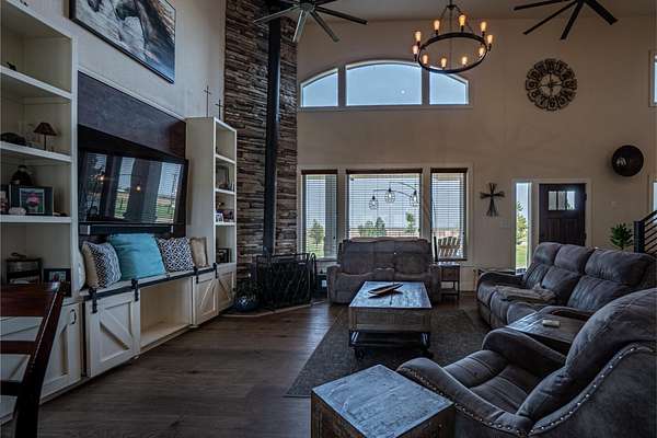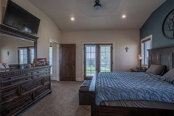 The main residence, completed in 2018, showcases quality finishes throughout. The two-story home offers 6 bedrooms, 3.5 bathrooms, and 3,275 square feet of living space, along with a 1,320 square foot unfinished basement. The property has covered porches on the East and the West side of the house. The West patio is designed for entertaining. Featuring a dedicated grilling space with gas hookups for grills, and a hot tub, along with doors directly into the master suite. An attached two-car garage with an oversized concrete approach provides plenty of parking, while a covered area accommodates two additional vehicles as well as a space for an RV, travel trailer, boat, or other recreational equipment. An automatic backup generator services the main house, powered by natural gas, ensuring year-round comfort.