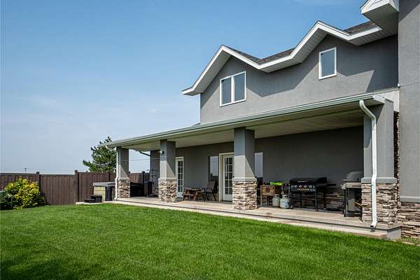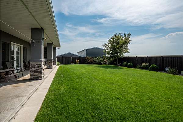 The grounds showcase well-established grass and mature trees, complemented by a newly planted tree row for future windbreak and privacy. A fenced backyard creates a safe and inviting space for children and pets, making this an ideal property for both recreation and comfortable country living.
