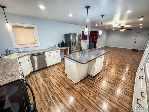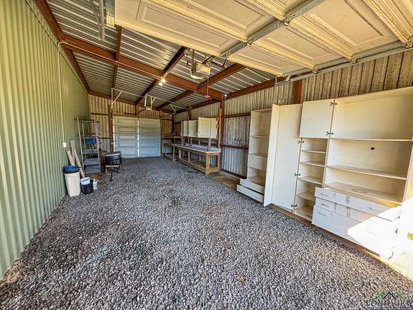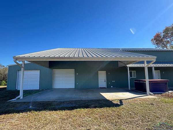 Country living at its finest unfolds across this breathtaking 24+ acre estate, where gently rolling terrain gives way to pristine pastures dotted with majestic oaks and ancient pines. As you arrive, the landscape opens into a peaceful haven, and nestled within it is a picturesque barndominium that feels like it was lifted straight from the pages of Southern Living. Framed by irrigated grapevines, fruit trees, and whimsical birdhouses, the home is a true retreat inviting you to slow down and savor the serenity. A wide, 1,210-square-foot wraparound porch wraps the home in charm and comfort, calling for rocking chairs, sunrise coffee, and evenings spent listening to the crickets under a canopy of stars. Step inside and you'll immediately sense the care and attention poured into every detail. The interior feels fresh and new, with an open-concept living and kitchen area that welcomes you with stainless steel appliances, a corner sink offering views through two windows, and a spacious kitchen island perfect for gathering with family and friends. The home features three bedrooms and two baths, thoughtfully designed for both comfort and versatility. A flex room with custom cabinetry and a hideaway pull-down bed offers the ideal space for a home office or guest suite. Just outside, a bonus hobby room with its own sink and appliance setup provides endless possibilities whether you envision a studio, craft space, or even an additional bedroom. The primary suite includes a generous walk-in closet with custom shelving for maximum organization, and the large laundry room adds convenience with a built-in sink and extra storage. Outdoors, the property continues to impress. The land is predominantly open, with approximately five acres of wooded area offering shade, privacy, and a natural buffer. Camp creek meanders gently through the woods, creating a serene setting for nature walks, birdwatching, or simply enjoying the soothing sounds of flowing water. A small pond adds another touch of tranquility, while the inviting hot tub offers a perfect spot to unwind beneath the stars. Storage is abundant, with a 413-square-foot attached garage, a second 640-square-foot garage featuring roll-up doors on both ends, and a 691-square-foot carport to accommodate vehicles, equipment, or recreational gear. Location is the final flourish. Perfectly positioned between three of East Texas most beloved lakes Lake O the Pines, Lake Wright Patman, and the mystical Caddo Lake you'll find yourself surrounded by opportunities for boating, fishing, kayaking, and nature exploration. Despite the peaceful, rural setting, you're never far from modern conveniences. Everyday essentials like Walmart, Brookshires, and local dining are just 15 minutes away. For more advanced medical care, major shopping, and entertainment, Texarkana is a quick 45-minute drive, while the vibrant cities of Shreveport and Longview are reachable in under an hour.