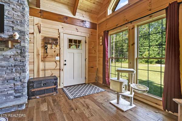 Newly Built 2024 Honest Abe Log Home on 2 Unrestricted Acres. Welcome to your dream log retreat nestled in the heart of the country in Jamestown, Tennessee. This custom Honest Abe Log Home is the perfect blend of rustic beauty and modern sophistication. Step inside to find hickory flooring throughout, dramatic cathedral ceilings, and a gorgeous stone gas fireplace that anchors the main living space. The kitchen is a chef's dream with custom hickory cabinetry, granite countertops, a large island, and high-end KitchenAid black stainless-steel appliances. The spacious master bedroom leads to a beautifully tiled walk-in shower in the primary bath. Enjoy your morning coffee or evening wine on the 10x16 screened porch overlooking your private acreage. Extras abound: porcelain tile in kitchen & baths, on-demand water heater, natural gas Kohler generator, well and city water, concrete crawlspace floor, 24x32 garage/workshop, RV hookups & septic. No restrictions. Peaceful location. Built to impress--designed to endure. Buyer and Buyer's Agent to verify all details. Call today to make this Tennessee treasure yours!