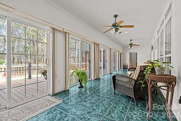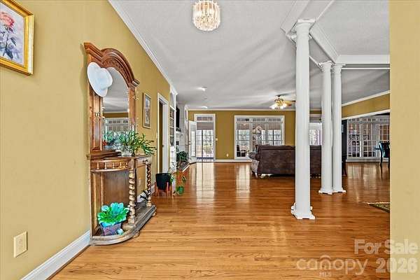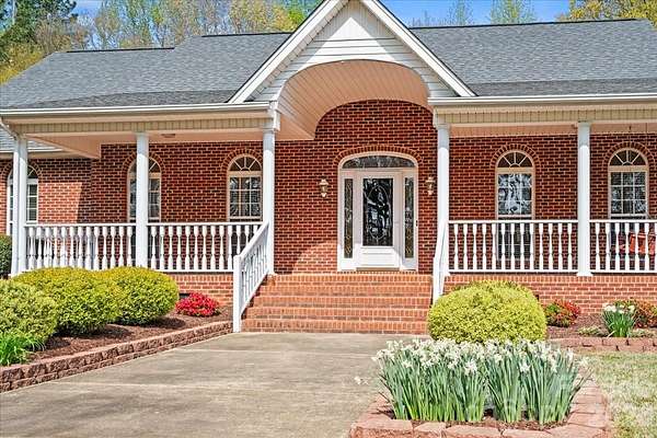 This amazing 6 acre property with a lovely brick home, has something for everyone! It fronts on the beautiful White Plains Golf Club course, but the onsite trees and extensive beautiful landscape affords plenty of privacy to the property with NO HOA! Enjoy overlooking the heated inground saltwater pool, from the rear deck or sunroom. The outdoor entertaining space includes a covered eating area with stone fireplace and large stone charcoal barbecue grill. The adjacent oudoor kitchen has a range, refrigerator and sink. The pool house has a half bath and outdoor heated shower. The climate controlled detached shop/garage has room for two more additional cars and workshop area. The split bedroom plan affords plenty of privacy to the primary bedroom and ensuite bathroom with soaking tub, shower and double vanity. There is a bonus room over the 3 car garage that has a closet and can be a 5th bedroom, along with a second primary bedroom with ensuite bathroom and two other bedrooms that share easy access to a full hall bathroom. The kitchen has lots of cabinets, granite counters, a bar area and adjacent breakfast area. The living room features a cozy fireplace with attractive adjacent built ins and there is plenty of room for indoor entertaining or relaxation in this living and dining room space with beautiful hardwood floors. Enjoy the inviting front covered porch, concrete driveway, and let's not forget the 22kw whole house generator! NOTE: If you are looking for alot more land, the adjoining 50.75+- acres is available ONLY with the purchase of this home and 6 acres, for an additional $765,000.00, for a total list price of 1,664,000.