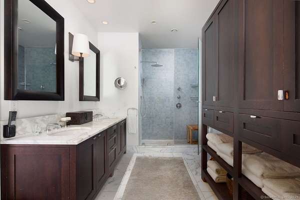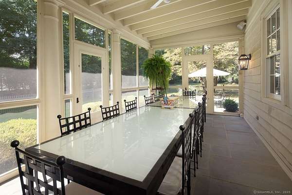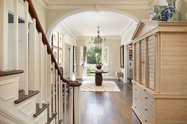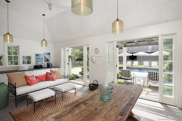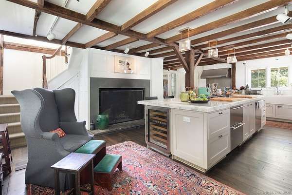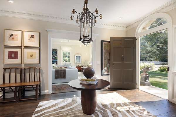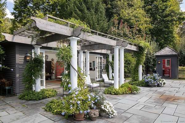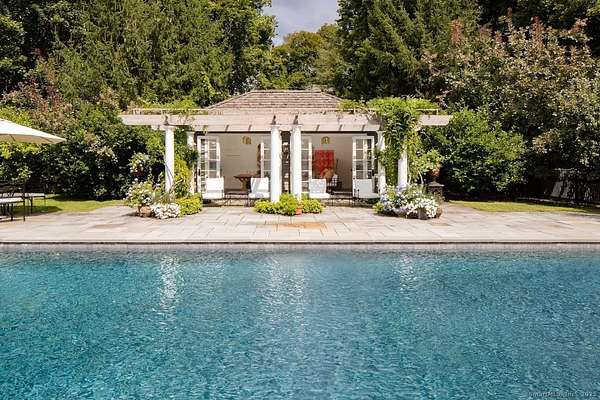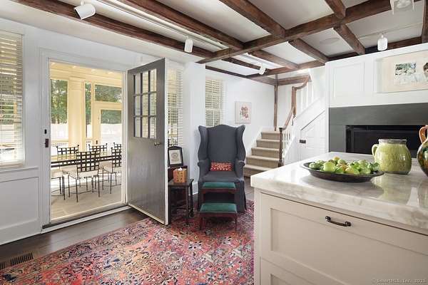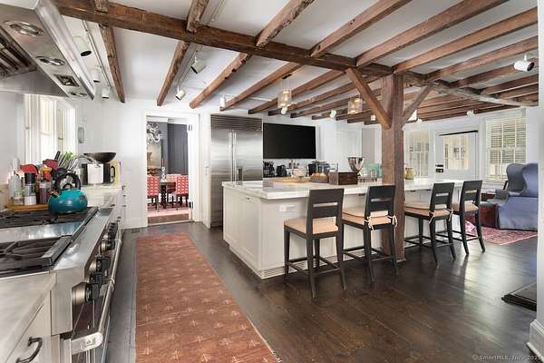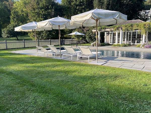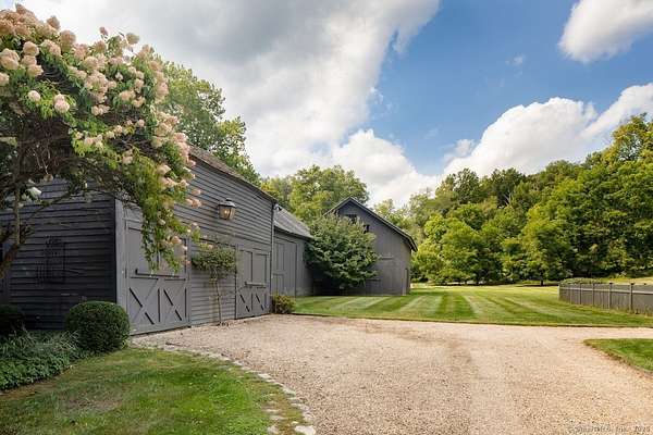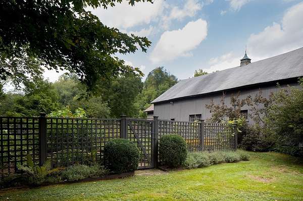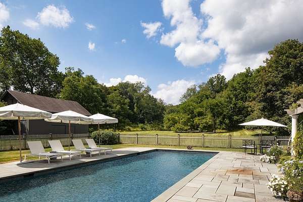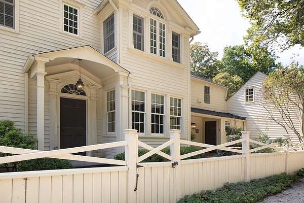 This 18th century American Georgian stands as one of Lakeville's finest historic properties, gracing over 5 pristine acres alongside Burton Brook. The distinguished residence perfectly balances preserved period authenticity with thoughtful modern updates, earning recognition in Luxe magazine and The Friends of the American Georgian Group-NYC tour. Original doorways, decorative trim, and historic fireplaces define the formal entertaining spaces, while a welcoming country kitchen with its own period fireplace anchors the casual living areas. The sophisticated blend of architectural heritage and contemporary comfort creates an exceptional living experience throughout. Four ensuite bedrooms and a primary suite with a separate dressing room provide generous accommodations. A thoughtful layout makes the residence ideal for hosting extended family and guests while maintaining privacy and convenience. Stone walls and mature landscaping embrace multiple outdoor living spaces, from intimate stone terraces to covered porches. The heated gunite pool and pool house with detached bathroom, three antique barns, and park-like setting complete this distinguished Litchfield County home.