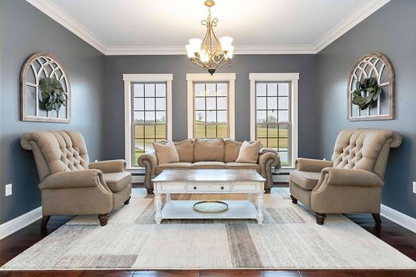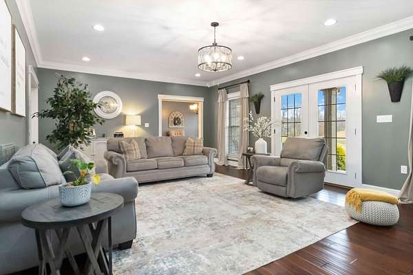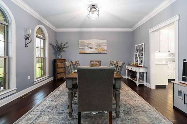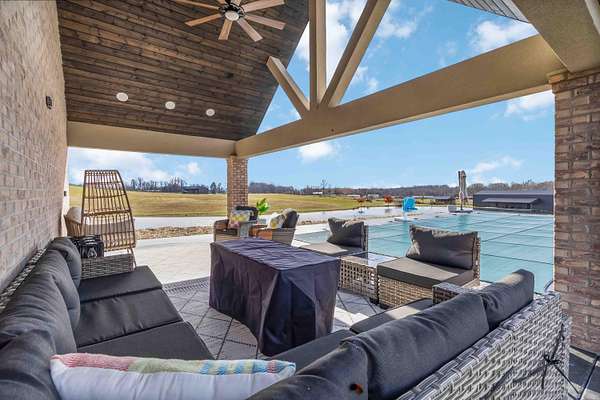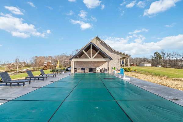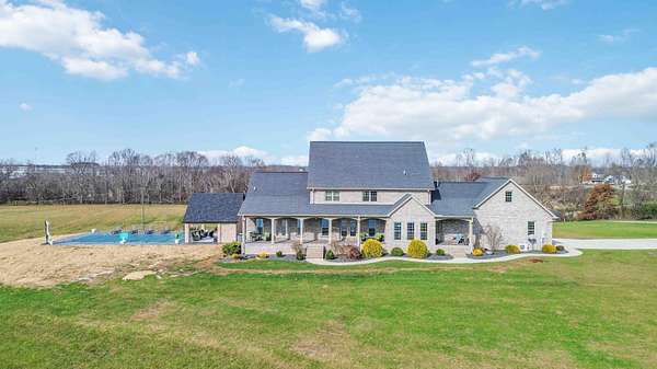 Introducing a luxury listing that blends modern refinement with timeless Southern Colonial Revival elegance-a truly remarkable estate offering 4,447 sq ft of extraordinary living space on 4.73 scenic acres. From the moment you arrive, the stately facade, columned porch, and classic architectural symmetry set a tone of refined presence and grandeur. Inside, a soaring two-story entry welcomes you into expansive living areas thoughtfully designed for comfort and versatility. This home offers multiple living spaces, a warm family room with fireplace, a formal dining room, and a dedicated home office ideal for today's work-from-home lifestyle. The gourmet kitchen is a standout with granite countertops, stainless steel appliances, and plenty of workspace for entertaining or daily meals. With 5 bedrooms and 3.5 baths in the main home, luxury and functionality meet seamlessly. The main-level Primary Suite provides a spa-quality retreat with a gorgeous tiled walk-in shower, freestanding soaker tub, and dual vanities. Upstairs, an open loft room provides additional flexible space-perfect for a lounge, playroom, exercise area, or creative studio-along with a bonus room offering even greater versatility for media or recreation. Outdoor living is extraordinary with large stamped concrete front and back covered porches accessible from multiple points in the home and overlooking picturesque farm and pond views. A newly completed 16' x 40' inground pool with stained concrete decking becomes the centerpiece of outdoor entertainment, complemented by a pool house featuring its own half bath, and a spacious covered outdoor living area ideal for gatherings, grilling, or quiet relaxation. A massive oversized garage offers abundant space for vehicles, equipment, and workshop needs. The property also includes a barn, offering incredible potential for storage, hobbies, equipment, animals, or future agricultural pursuits. Conveniently located just off Levi-Jackson Fariston Rd, with entry through the well-established Park Estates subdivision, this property delivers luxury, beauty, privacy, and accessibility in one exceptional package. Additional acreage is available for purchase for those desiring even more room to expand or develop. Grand in presence. Refined in detail. Designed for living. This distinguished Southern Colonial Revival estate is one you must see to fully appreciate!