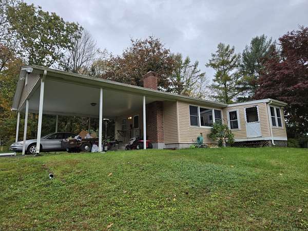 Charming single level living on 2 Acres. Set on a peaceful 2-acre lot, this well-built 4-bedroom, 2-bath Ranch style dwelling offers comfort, space, and great potential. Built in 1971 and featuring approximately 1,300 sq. ft. of living space, the home includes a newer roof, updated heating system, and low-maintenance vinyl siding. The spacious eat-in kitchen opens to a bright living area, while the enclosed porch and back deck provide great spots to relax and enjoy the quiet surroundings. The full unfinished basement with a wood stove offers plenty of room for storage or future expansion. A large 2-car carport adds excellent covered parking. In overall good condition with room for cosmetic updates, this property is ideal for anyone looking for country living with convenience and value.