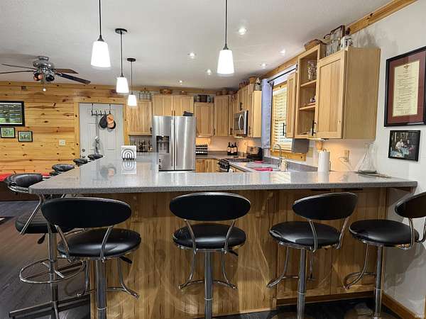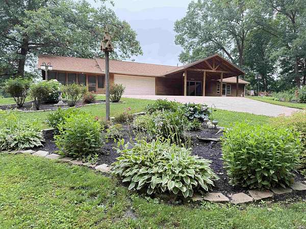 Discover this impressive 1,816 sq ft A-frame home where rustic charm meets modern convenience. Featuring 2-3 bedrooms, 2 full baths, and a loft, this home is anchored by a stunning fireplace and surrounded by serene natural beauty. Enjoy relaxing or entertaining on the expansive Trex deck, while the concrete drive and patios add ease and functionality to your outdoor living. The outdoor space is exceptional, beginning with a versatile building just behind the home that includes a large covered patio, full kitchen, full bath, screened porch, and abundant storage. Nearby, a 44 x 46 pole barn offers well-designed stalls for your animals, plus a 46 x 16 lean-to that provides welcome shade for horses or livestock. Your guests will love the dedicated camping area with 30 and 50 amp hookups and a water connection . . . ideal for weekend visits or gatherings. This sale includes 3 parcels totaling 13.68 acres, with a second entrance on the back side of the property. . . perfect for added accessibility or future expansion. All just minutes from the beauty and recreation of Spring Mill State Park!