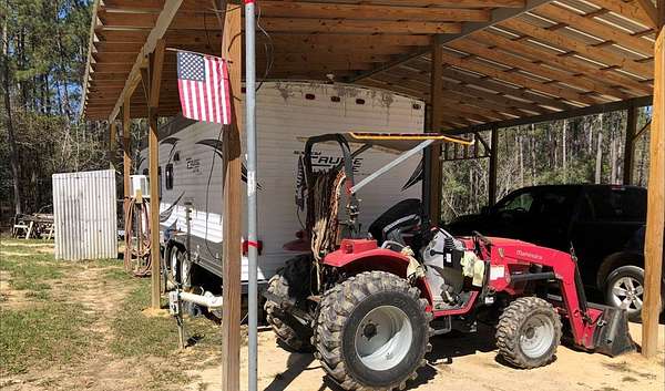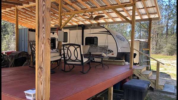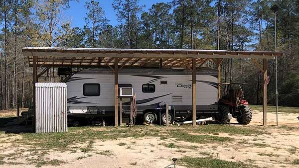 If you are looking for peace and quiet, this is it, and it is basically move-in ready. This partially cleared property comes with a 2015 26 ft pavilion covered Forest River Camper with room to park a vehicle out of the weather, a roomy deck attached to the camper, a solid-built metal shed housing a washer and dryer, a clothesline, and of course, complete with a water well and septic system. If this is the atmosphere you are looking for, see for yourself, you will not be disappointed. A tractor with an auger attachment is also available for sale at an additional cost. Reliance should be placed on plat and survey for property boundaries. MLS pictures are deemed unreliable for property identification and should not be relied upon by the buyer.
