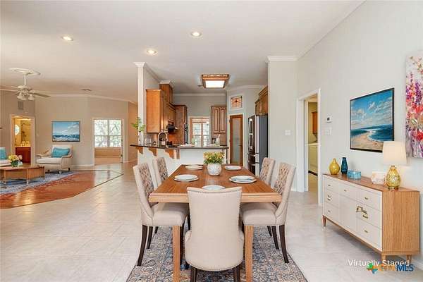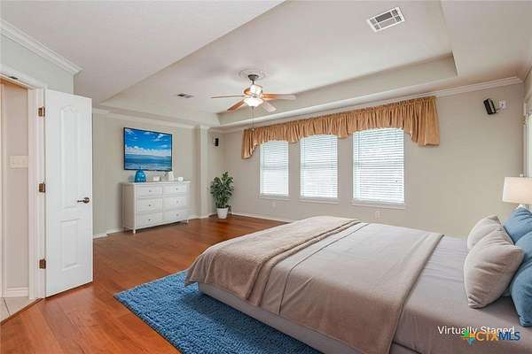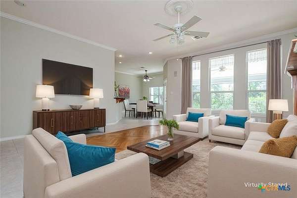 - Breakfast Area, Breakfast Bar, Carbon Monoxide Detector, Ceiling Fans, Crown Molding, Dining Area, Double Vanity, Granite Counters, High Ceilings, Home Office, Kitchen Island, Multiple Dining Areas, Pantry, Recessed Lighting, Separate Formal Dining Room, Separate Shower, Tray Ceilings, Tub Shower, Walk In Closets, Walk In Pantry, Wired For Sound