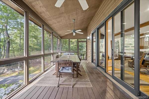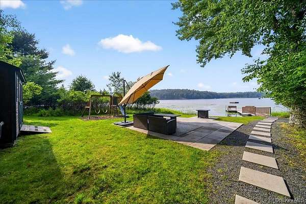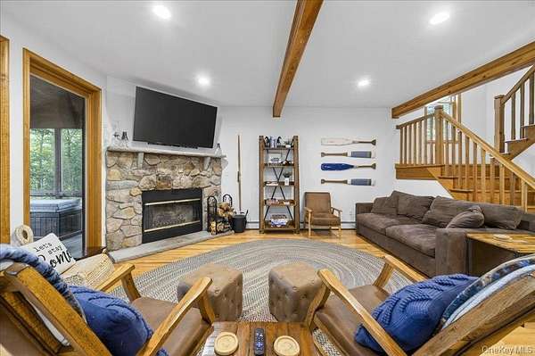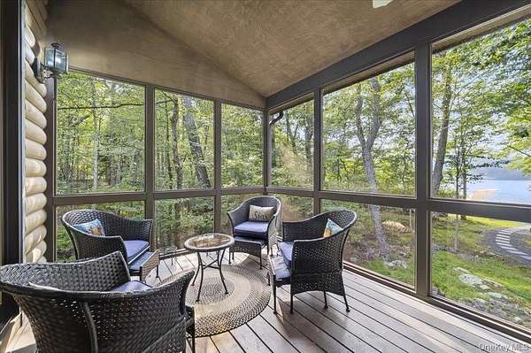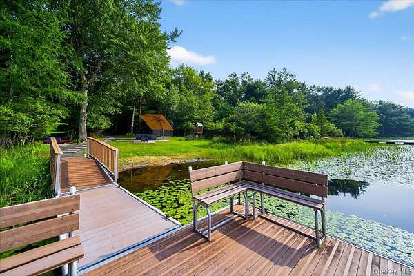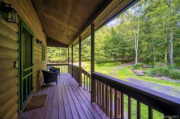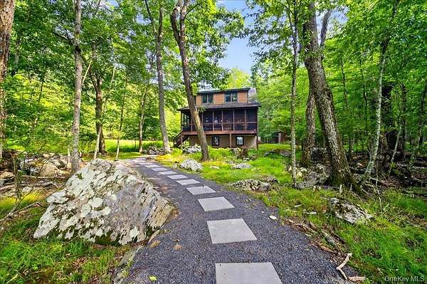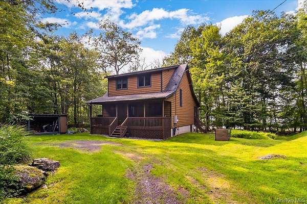 Escape to this beautiful log-sided country contemporary home, nestled in the peaceful and private gated community of York Lake Shores in Barryville, NY. Set on over five wooded acres, this serene retreat offers direct access to a stunning 92-acre glacier lake, perfect for electric motor boating, kayaking, crystal-clear swimming, or casting a line for some great fishing--truly a year-round destination.