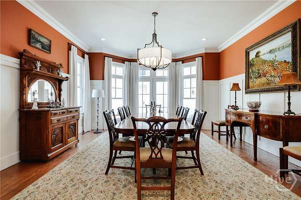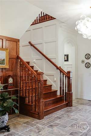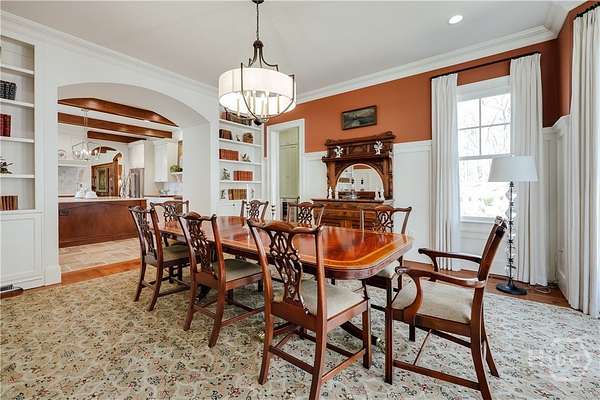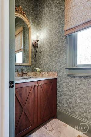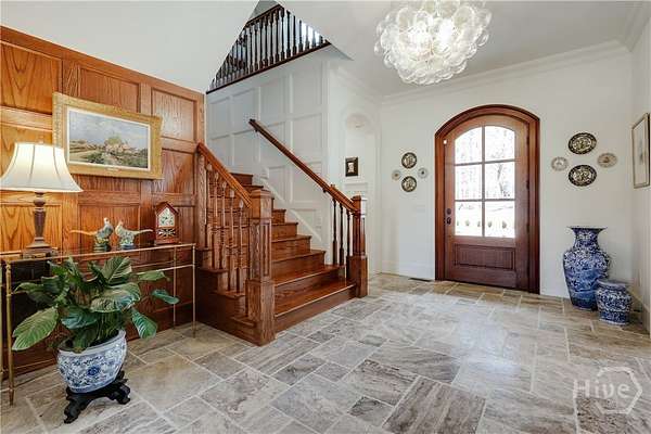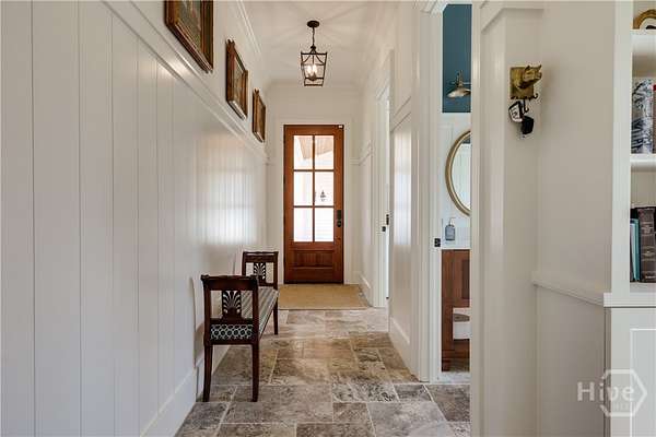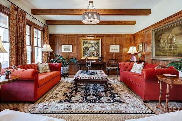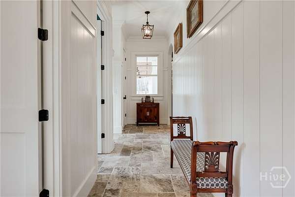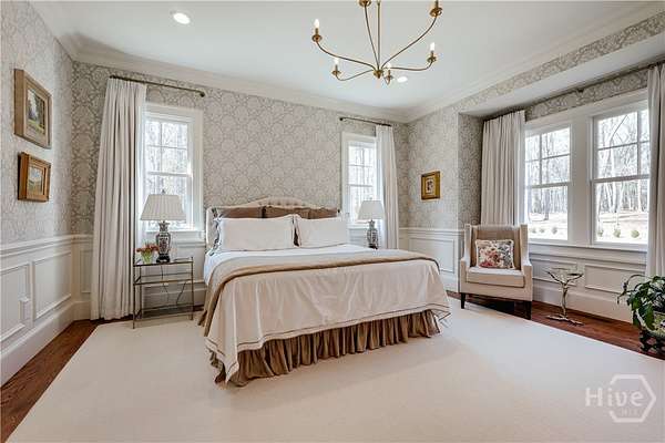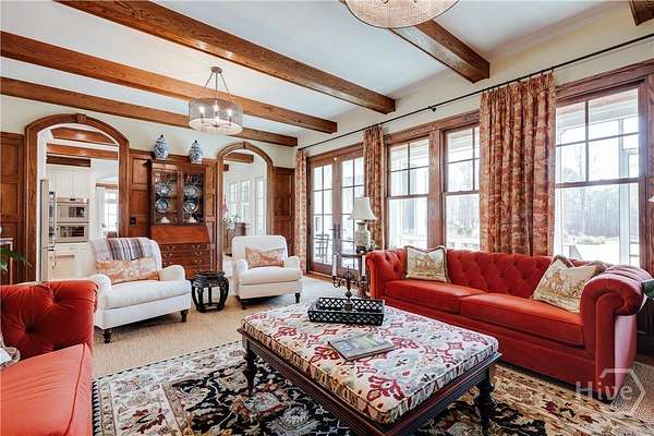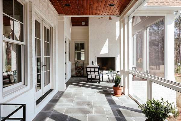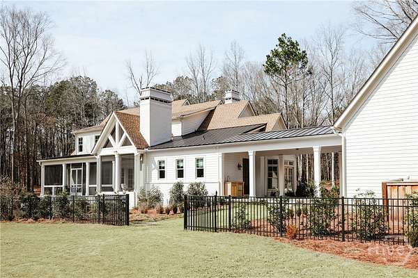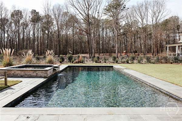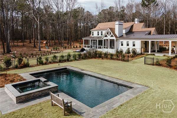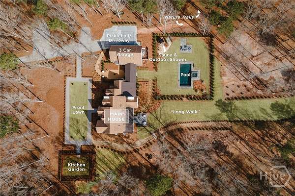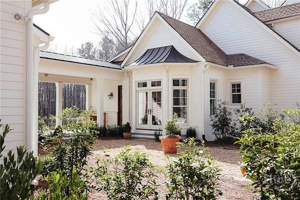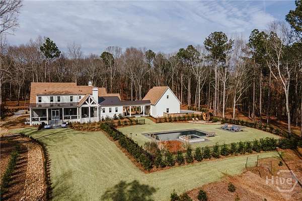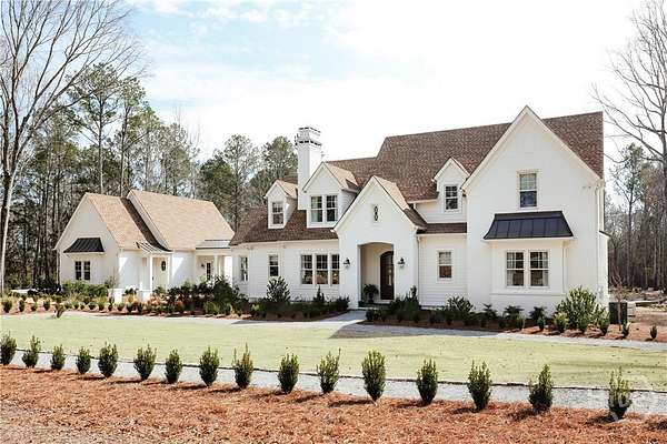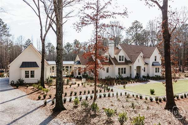 "An English country home in the heart of Oconee County." Set on 22 wooded acres, this gabled manor home draws inspiration from the elegance of a British country house-where craftsmanship, natural beauty, and refined indoor-outdoor living come together. Located ten minutes from Watkinsville and Wire Park, and twenty from Five Points, the property offers rare privacy with easy access to town. Completed two years ago, the custom-built residence reflects extraordinary attention to detail. The foyer and family room were inspired by a boutique London hotel. Hardwood floors, exposed beams, arched doorways, and millwork create warmth and architectural depth, while travertine floors in the entry and kitchen anchor the home's central gathering spaces. The home's six bathrooms feature bespoke vanities. The main level includes a study with fireplace, a gracious family room, and a hidden children's playroom tucked beneath stairs. The kitchen is beautiful and functional, featuring dark walnut counters, a large island, walk-in pantry, and office nook. The primary suite is located on the main level and includes a lavish shower and bath. Upstairs are three spacious bedrooms, along with a bonus room suitable for a gym or playroom and an additional office with a wet bar. A three-car garage is connected by a breezeway and includes conditioned space above for hobbies, storage, or exercise. The landscape is as thoughtfully designed as the home. A screened porch with fireplace provides views across the property and down the "Long Walk" to a meadow. Bluestone patios lead to resort-style outdoor living, featuring a pool, spa, sauna, and outdoor shower. Trails wind through the woods, an eight-foot lattice-fenced "Kitchen Garden," and the "Upper Meadow" is suitable as a playground or soccer field. This rare luxury home near Athens, Georgia, offers the best of both worlds: privacy, acreage, and refined country living in Oconee County, minutes from Watkinsville and Athens.