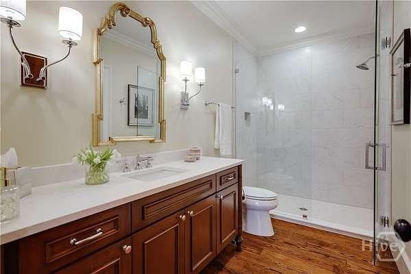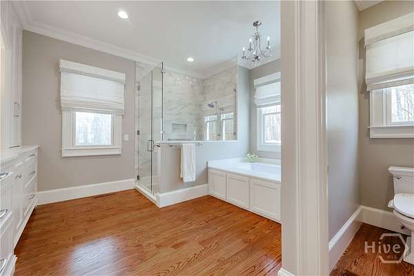 - Built-In Features, Butler's Pantry, Double Vanity, Entrance Foyer, Garden Tub/Roman Tub, Gourmet Kitchen, High Ceilings, Kitchen Island, Main Level Primary, Pantry, Primary Suite, Recessed Lighting, Separate Shower, Vaulted Ceiling(s), Wet Bar