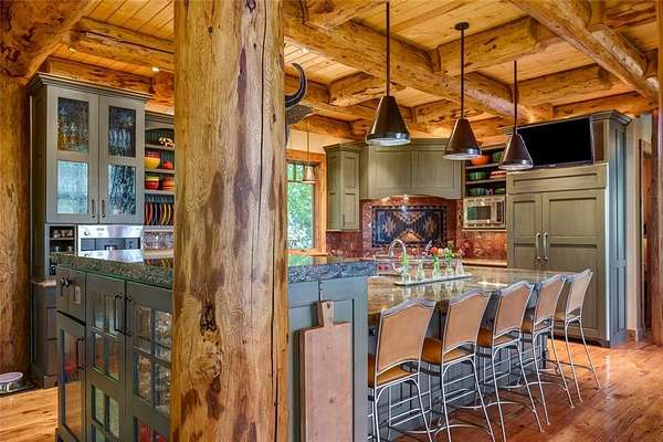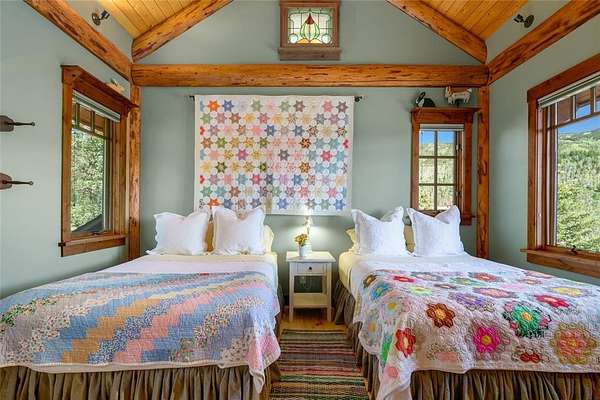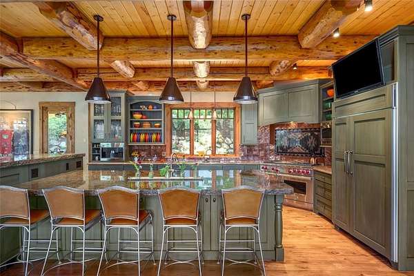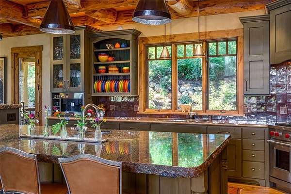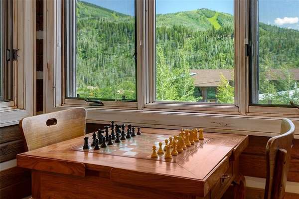 It takes a bit of artistry and a very creative builder to evoke a "Cabin in the Woods" feel from an amazing 5 bedroom, 4+2 bath, custom home just minutes from the World Class Ski Resort of Steamboat. Nestled in wooded privacy, you'll be surprised by the amazing ski area and valley views from the main living spaces and deck. The main level offers a fantastic great room with tall, vaulted ceilings highlighting the exposed log trusses, a rustic stone fireplace with reclaimed barnwood mantle, a chef's kitchen with granite counters, high end appliances such as Wolf and Sub-Zero, 2 dishwashers, warming drawer, built-in Miele coffee/espresso station, custom cabinetry, and a large center island with plenty of bar seating. Enjoy ski area views from the spacious front deck, partially covered with a wood burning fireplace. In back is a cozy covered patio with a built-in grill. Down the hall find the office with built-in desk and storage and the charming, primary bedroom, graced with rustic chinked walls and distressed flooring, boasting vaulted ceilings, large walk-in closet and a spacious bath with rain shower and air jetted tub. Three bedrooms upstairs include one with a private bath and one with a large, lofted space, great for extra storage or an adventure spot for the kids. More fun to be had on the lower level with a great rec room and wet bar offering access to a large patio and yard. The Bunk Room will host plenty of kids or guests, each bunk with their own custom, lights, shelves and storage and a large bath also offers cubbies for each bunk. Notable features include a great mud room, oversized 2 car garage, central air conditioning, custom closet organization, and more. There are 3 large storage closets aligned on each floor, just the right size for an elevator. Membership to The Rollingstone Ranch Golf Club is included subject to a transfer fee. If you are looking for your dream home in Steamboat, this home embodies the rustic spirit of the Rocky Mountains.