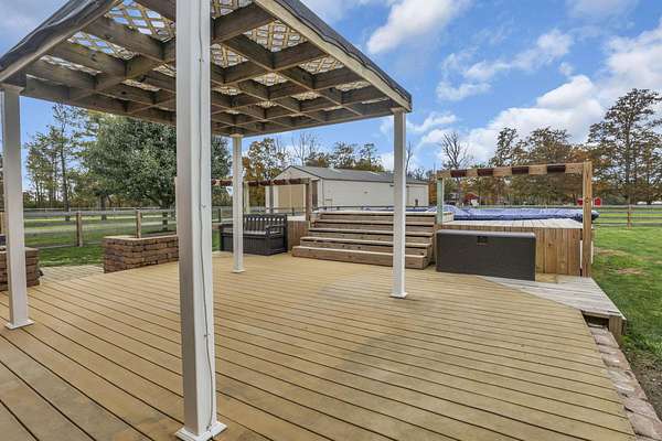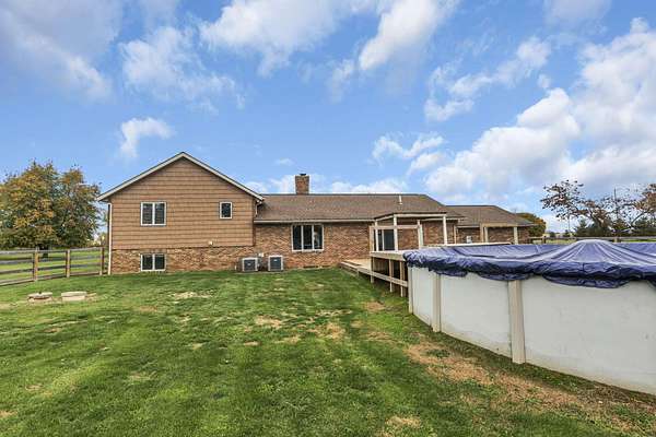 Welcome to the Country! Enjoy peaceful living in this beautiful 3-level home set on 3.9 acres. With 4 spacious bedrooms, there's plenty of room for family and guests. The master suite offers a cozy, private retreat with is own en suite bath. The living room features a charming stone fireplace, perfect for relaxing fall evenings. The lower level includes laundry and a versatile bonus space with endless possibilities. NEW carpet has just been installed on the stairs and through out the second level. Step outside to your fenced-in backyard oasis, complete with sparkling pool and relaxing hot tub-perfect for entertaining or unwinding year round. A 64x40 pole barn adds incredible flexibility for hobbies, storage, or projects and even includes a smaller heated garage inside the large barn. Whether you are looking for space, privacy, or the perfect blend of indoor and outdoor living, this property has it all! Call to schedule your showing today!