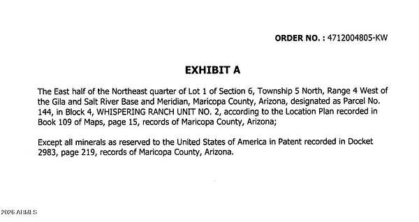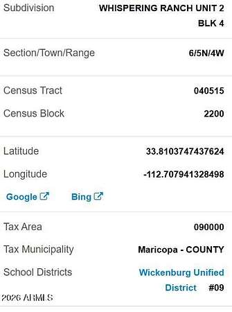 5 Acres with Mountain Views Under $100K - Prime Whispering Ranch Investment. Level, high-and-dry parcel offering panoramic desert and mountain views. Located in the growing Whispering Ranch area near the proposed Hidden Waters Pkwy and planned Vulture Mountains Regional Park. Ideal for investment, land banking, or future build. Enjoy privacy, open space, and natural desert beauty with strong long-term upside potential as development expands west. Buyer to verify utilities, zoning, and access. Drive by and walk the property. Listing Agent related to Seller.