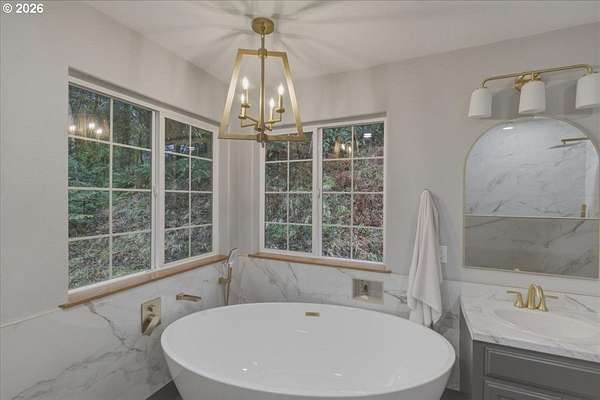 - High Ceilings, Laundry, Soaking Tub, Vaulted Ceiling