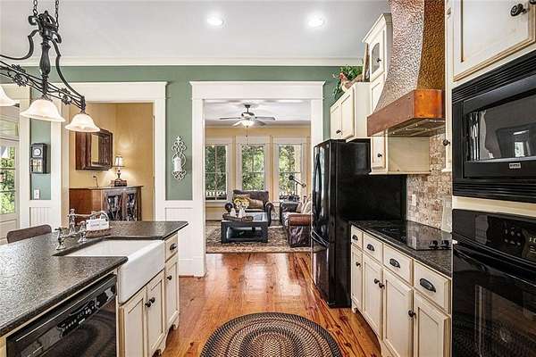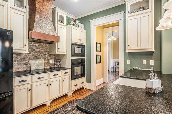 Step inside to discover 3 spacious bedrooms and 3.5 bathrooms, with the primary suite conveniently located on the main level. Throughout the home, you'll find rich 6" heart of pine floors and thoughtful touches like distressed granite countertops in the kitchen, incredible detailed millwork throughout, 10.5' ceilings and old-world lighting fixtures blending one-of-a kind design & rustic elegance with everyday comfort. Great attention to detail throughout from 8' solid wood doors, emtek glass door knobs and locks, Anderson windows, hand-turned spindles, and federal period paint schemes. Attic is sprayed-in foam insulation, making heating and cooling for the two new units economical and effective even in the hottest summers. PLUS professionally installed security system for property and buildings, with on-site data storage.