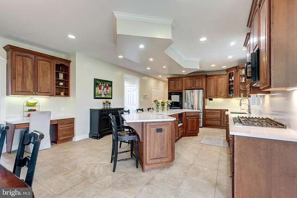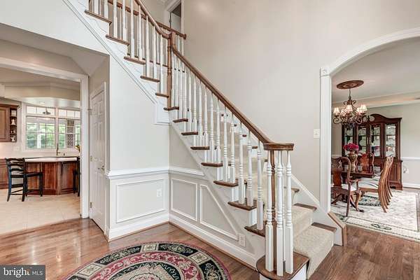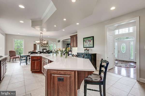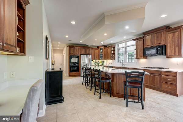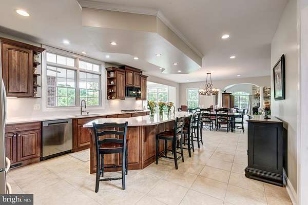 - 2 nd Kitchen, Bar, Breakfast Area, Built-Ins, Carpet, Ceiling Fan(s), Chair Railings, Combination Kitchen/Dining, Crown Moldings, Dining Area, Eat-In Kitchen, Family Room Off Kitchen, Formal/Separate Dining Room, Intercom, Island Kitchen, Jetted Tub Bathroom, Pantry, Recessed Lighting, Stall Shower Bathroom, Traditional Floor Plan, Upgraded Countertops, Walk-In Closet(s), Walk-In Shower Bathroom, Wet/Dry Bar, Window Treatments, Wood Floors
