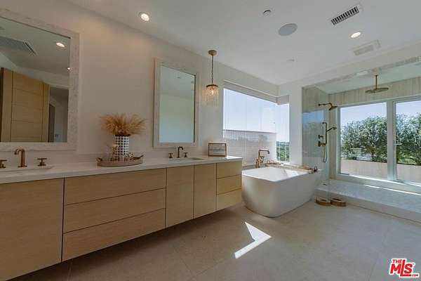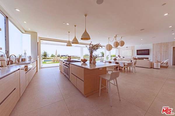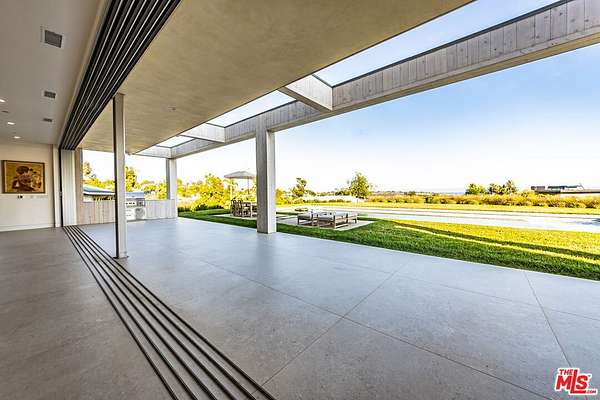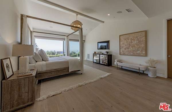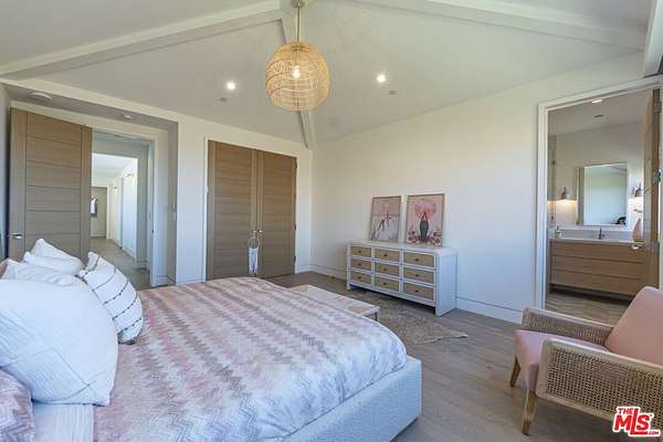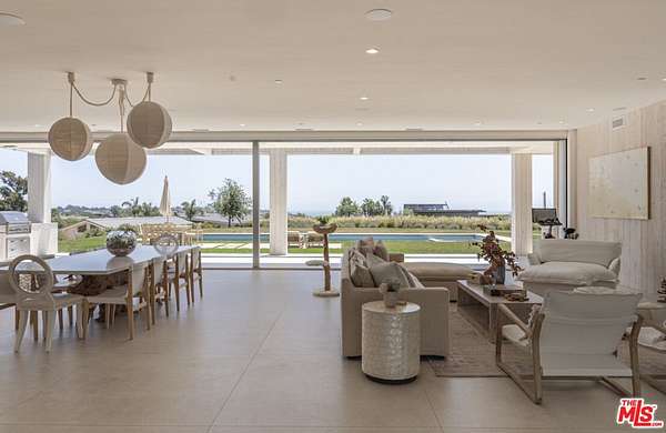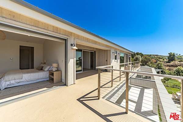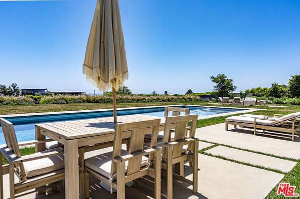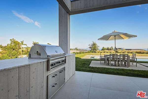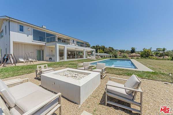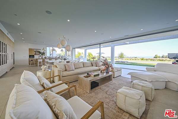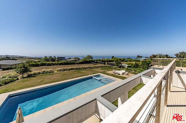 New Construction Completed in 2022. This stunning rustic-modern farmhouse, designed by renowned Doug Burge Architects, is perched above Zuma Beach in Malibu Park with breathtaking panoramic views of the Pacific Ocean. Enter through custom double gates and follow the exquisitely landscaped driveway to a spacious motor court with parking for up to six cars. A dramatic glass pivot door opens to a soaring, light-filled interior where porcelain floors and cedar walls create a serene, sophisticated ambiance. The open-concept living area is lined with pocket doors that span the entire length of the downstairs, seamlessly blending indoor and outdoor living and framing gorgeous ocean vistas. The entertainer's kitchen features terrazzo countertops and state-of-the-art Miele appliances, including three ovens and a 36-inch refrigerator and freezer.Outdoors, enjoy a 20 x 50 pool and spa, an expansive grassy area ideal for a volleyball court or lawn games, a beautiful fire pit for evening gatherings, and a fully equipped outdoor kitchen with Viking barbecue. The main house offers five generous en-suite bedrooms, including a spectacular primary suite with dual walk-in closets and a spa-inspired bathroom featuring ocean views from both the soaking tub and the luxurious shower. A well-appointed media room with a Sony projector, 104-inch screen, and two-tier seating completes the entertainment experience.With its own private gated driveway, the spacious guest house includes a full kitchen, double-sink bathroom, and a large bedroom with walk-in closet perfect for family and friends or use as a pool house. This is California coastal living at its finest. It is serene, stylish, and just minutes from Malibu's best beaches, restaurants, and shops. 13-month minimum term - no exceptions.