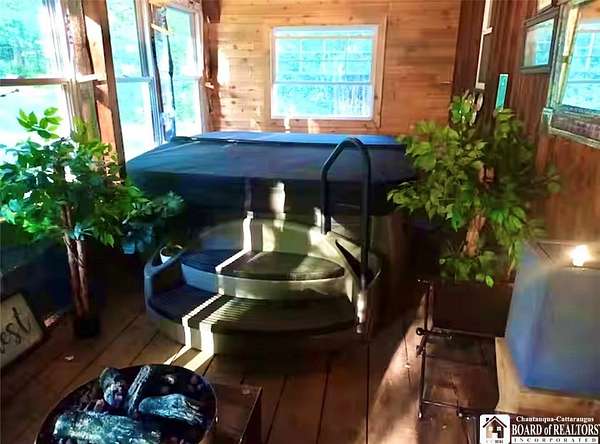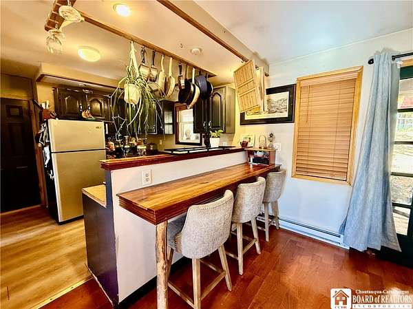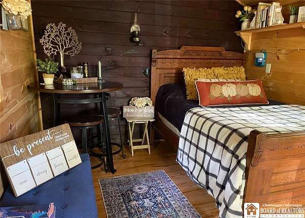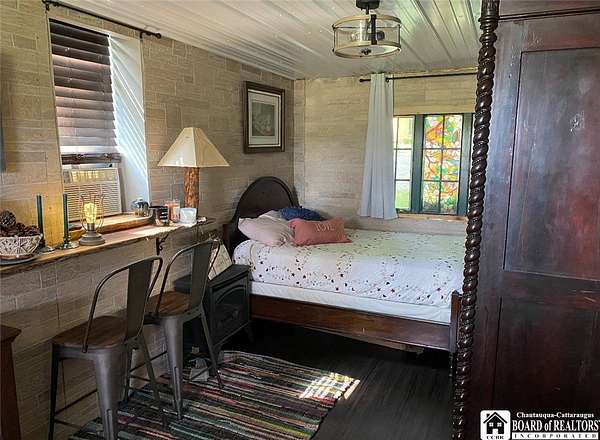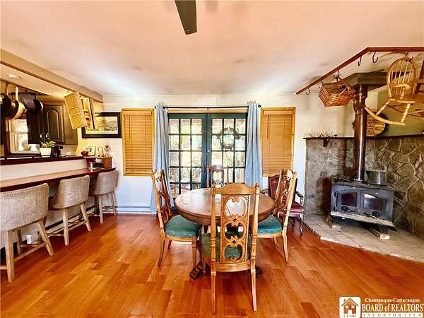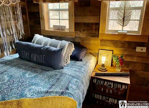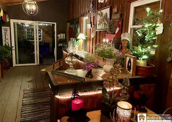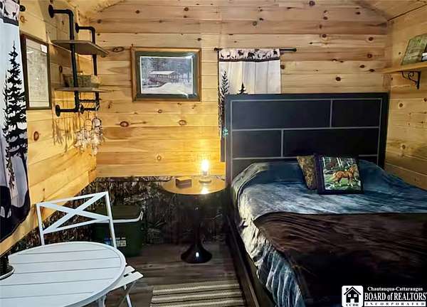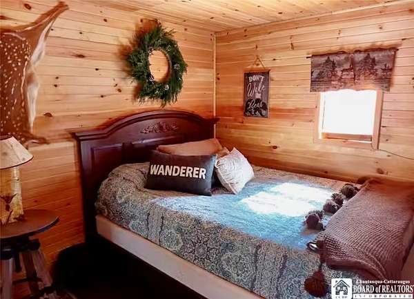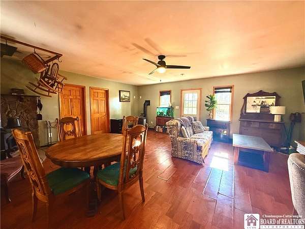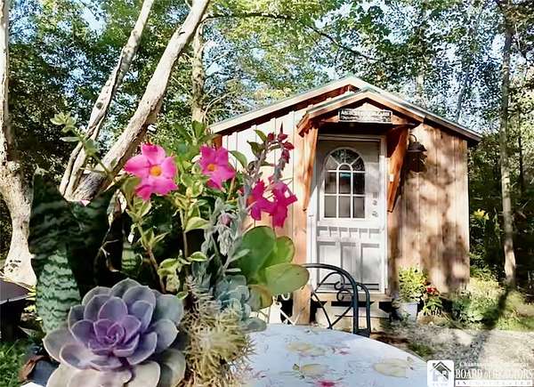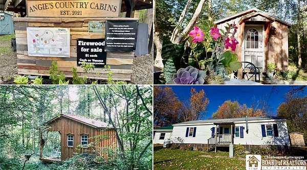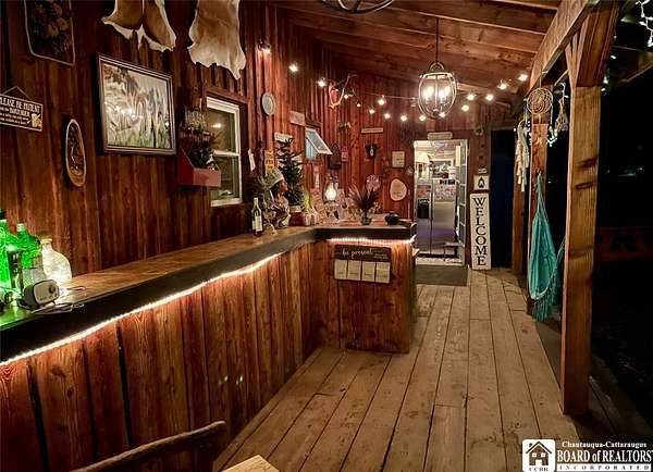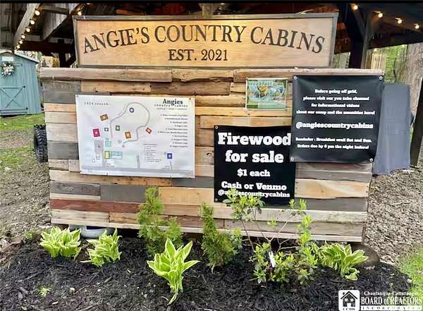 Attention outdoor lovers and investors! Nestled on 9.7 wooded acres filled with hard maple, cherry, and beech trees, this unique property offers the ultimate four-season getaway. Explore scenic trails right on your land or snowmobile directly across the street with access to over 2,000 acres of the Canadaway Creek Nature Conservancy. Enjoy nearby Earl Cardot Trails, and Cassadaga Lake-just minutes away. The updated 4-bedroom, 1.5 bath main home features an open floor plan with a cozy corner wood-burning stove, French doors leading to a 50x10 covered rear deck with bar, and an enclosed hot tub room-perfect for relaxing after a day outdoors. The kitchen offers a beautiful black walnut breakfast bar, and numerous updates make this home move-in ready. Beyond the main residence, this property is being operated as a Bed & Breakfast. This includes seven+ rental cabins, a primitive and modern outhouse, plus additional cabins currently being renovated-offering a fantastic short-term rental or group retreat opportunity. A large gazebo, multiple fire pits, grill areas, and playsets create the perfect setting for gatherings and outdoor enjoyment. Located near snowmobile trails, public hunting and fishing lands, Lily Dale Assembly, Chautauqua County Wine Trail, the Amish Trail, Lake Erie, and SUNY Fredonia-less than 10 miles from NYS Thruway, with Buffalo, Erie, and Niagara Falls just over an hour away. Whether you're looking for a recreational retreat, an income-producing property, or a place to live and play year-round, this one-of-a-kind property has it all!