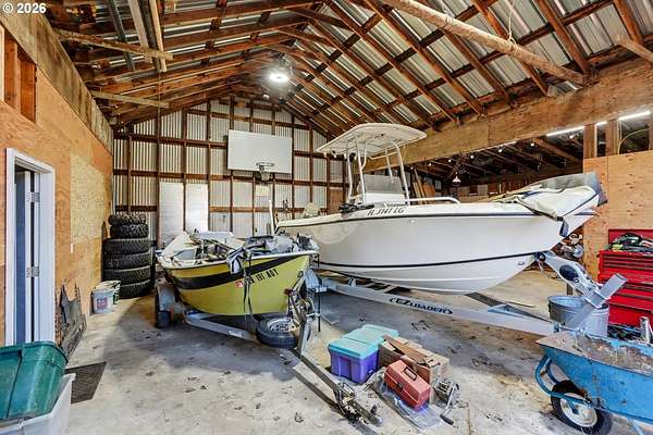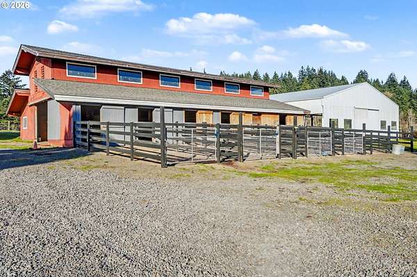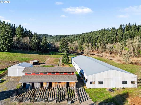 Exceptional ~36.5 acre equestrian property in a prime location, currently operating as a horse boarding facility with extensive equestrian amenities already in place. The impressive barn features a new roof and 8 total stalls, including 6 walk-out paddock stalls and 2 indoor stalls convertible to a foaling stall. Additional amenities include a horse wash station, tack-up area, and a tack room featuring a half bath and convenient sink and refrigerator area.Train year-round in the oversized 72' x 198' indoor dressage arena, complemented by a new 20-meter round pen. The property also includes a hay & shavings barn, additional 2 stall barn, large workshop, storage shed, and a 3-car carport. Fenced and cross-fenced with areas of newer fencing, plus ample turnarounds for trailers, this setup is ideal for boarding, training, or private use.The land itself is equally special, spanning approximately 36.48 acres and offering a pond, creek, and expansive open acreage with flexibility for future agricultural use, pasture, or personal farming, creating a peaceful and functional farm setting. The property consists of two tax lots and is conveniently located with an easy drive to Sherwood, Wilsonville, or Newberg, along with great nearby school options.The 3,324 sqft 4-bedroom, 3-bath home features a full basement providing additional living space, extra bedrooms, a sauna, and flexible use options. The finished basement is mid-remodel, with new lighting already installed and ready for your finishing touches. New heat pump installed in 2023. Upstairs, enjoy newer stainless steel appliances, granite countertops, laminate flooring, and a converted garage for extra living space.A rare opportunity to own a well-appointed equestrian property in a highly desirable location. More photos and 3D Tour available; visit the Virtual Tours.