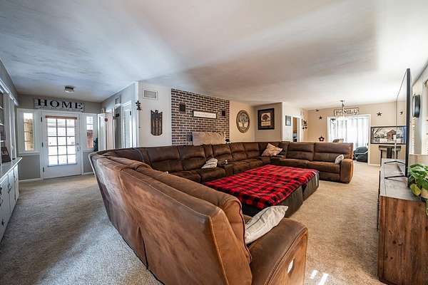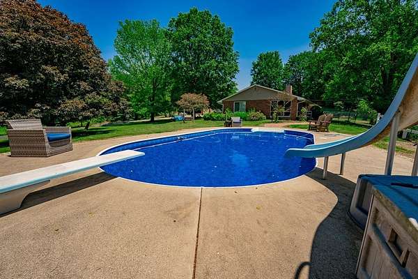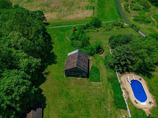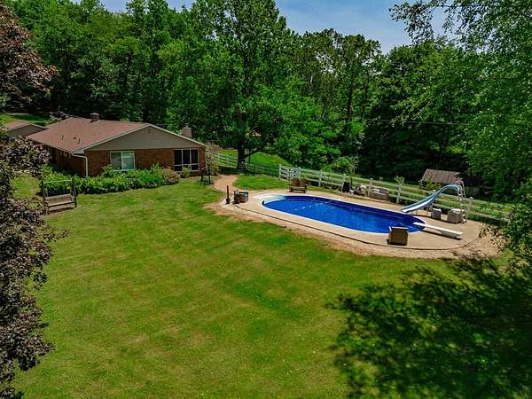 Just shy of 67 acres, this impressive property offers something for everyone! The sprawling brick ranch boasts 3,190 sq ft of living space and stunning views of the beautiful countryside, all nestled among the woods. This must-see home features 4 bedrooms, 2 1/2 bathrooms, including a remodeled primary en-suite bathroom with custom walk-in shower & new roof. Enjoy cozy evenings in the living room by the wood-burning fireplace, or curl up in the adjacent sunroom where the ambiance of the woodstove offers a perfect retreat. Outside you'll find hours of fun with a newly installed stamped concrete patio & hot tub or hang out at the in-ground pool complete with a new liner and cover (2024). A poolside cabin adds to the charm, while the impressive horse barn is perfect for equestrian enthusiasts. The property also includes a serene pond with a gazebo, providing an idyllic setting for relaxation. With its many features and breathtaking surroundings, this property is truly a one-of-a-kind gem!