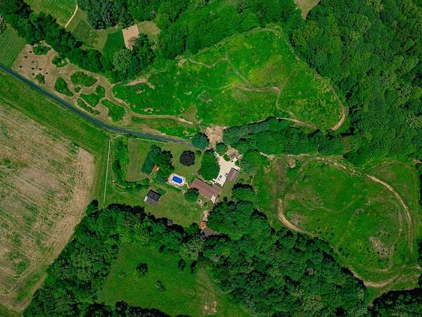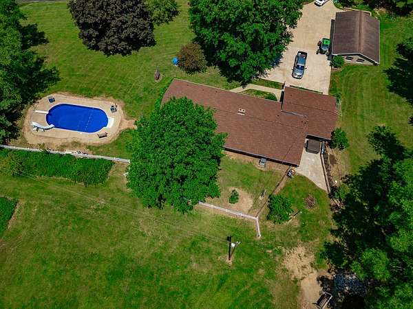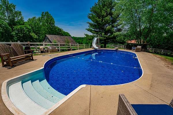 This impressive property offers something for everyone! The sprawling brick ranch boasts 3,190 sq ft of living space and stunning views of the beautiful countryside, all nestled among the woods. This must-see home features 4 bedrooms, 2 1/2 bathrooms, including a remodeled primary en-suite bathroom with custom walk-in shower & new roof. Enjoy cozy evenings in the living room by the wood-burning fireplace, or curl up in the adjacent sunroom where the ambiance of the woodstove offers a perfect retreat. Outside you'll find hours of fun with a newly installed stamped concrete patio & hot tub or hang out at the in-ground pool complete with a new liner & cover (2024). A poolside cabin adds to the charm, while the impressive horse barn is perfect for equestrian enthusiasts. The property also includes a serene pond with a gazebo, providing an idyllic setting for relaxation. With its many features & breathtaking surroundings, this property is truly a one-of-a-kind gem! Additional Land Available