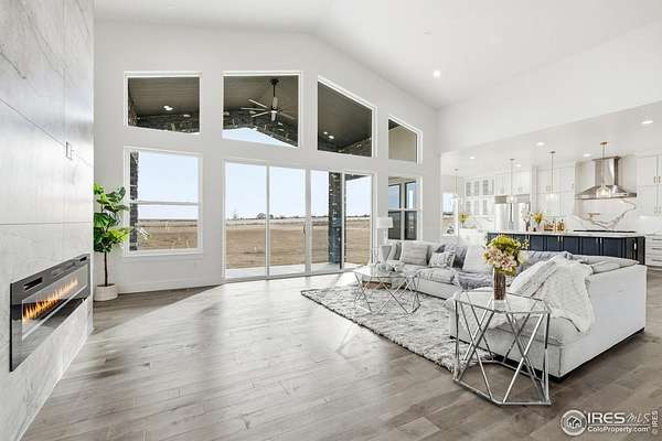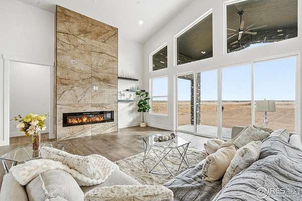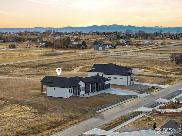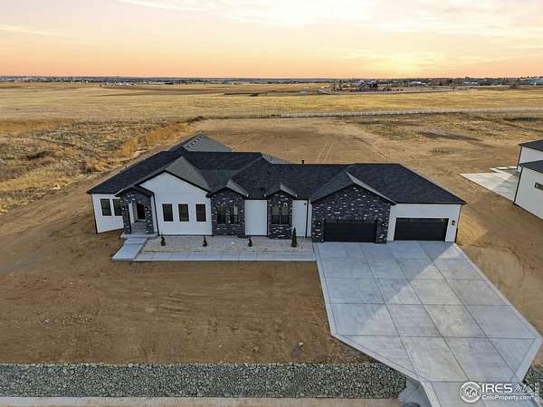 Experience the rare blend of modern luxury and Colorado ranch living in this exceptional new-construction residence, thoughtfully designed for those who value space, comfort, and intentional living. Set on a generous lot within a peaceful ranch-style community, this home offers the freedom of open surroundings with the convenience of nearby city access. From the moment you arrive, the striking modern elevation and covered porches invite you to slow down and enjoy the setting. Inside, expansive windows and soaring ceilings fill the open-concept layout with natural light, creating an effortless flow between the great room, dining area, and chef-inspired kitchen, ideal for both intimate moments and memorable gatherings. A statement fireplace anchors the living space, adding warmth and character year-round. The main-level primary suite is a true retreat, offering privacy, comfort, and a spa-like bath designed for relaxation at the end of the day. Additional main-floor bedrooms and a dedicated office provide flexibility for family, guests, or working from home. The fully finished basement extends the lifestyle even further, featuring multiple bedrooms and baths, an entertainment space, bar area, gym, and room to host, unwind, or create a multigenerational living environment. Every space has been designed with purpose and ease in mind. A rare four-car garage offers abundant room for vehicles, storage, and recreation, perfect for those who embrace an active Colorado lifestyle. Surrounded by wide-open skies and a sense of breathing room, this ranch-style neighborhood offers a peaceful escape while remaining minutes from Brighton's shopping, dining, schools, and commuter routes to Denver and DIA. This is more than a home, it's a place to live expansively, gather meaningfully, and enjoy the luxury of space, both inside and out
