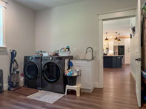 - Electric Dryer Hookup, Gas Dryer Hookup, Washer Hookup