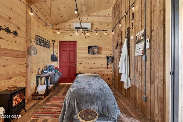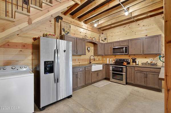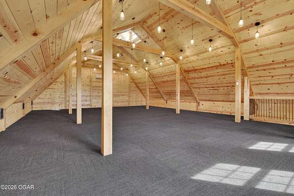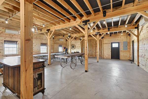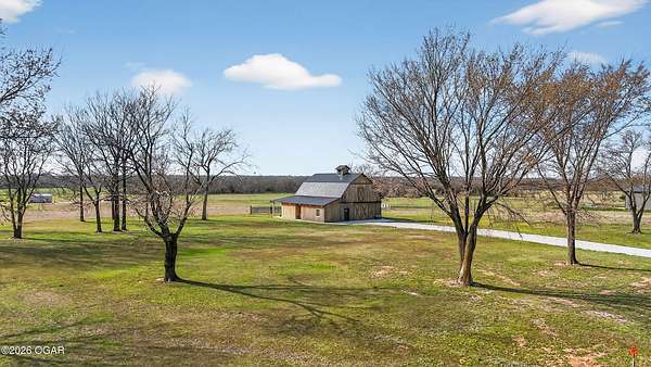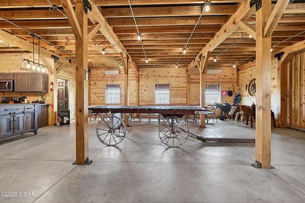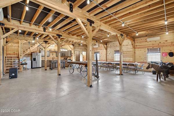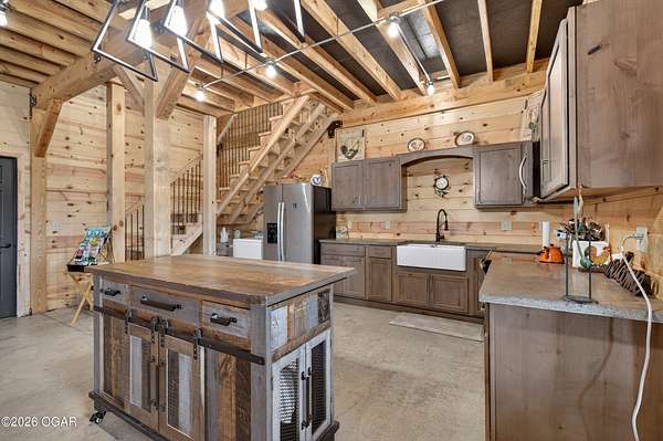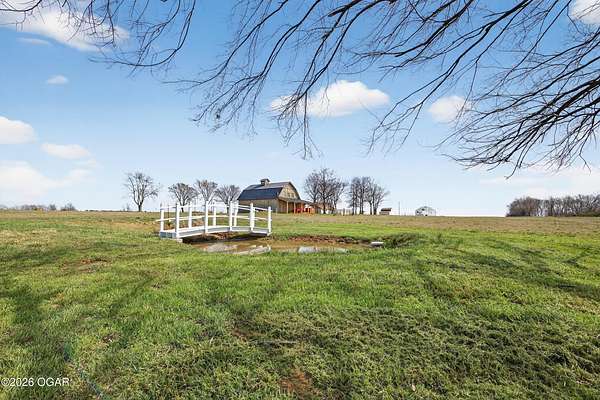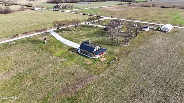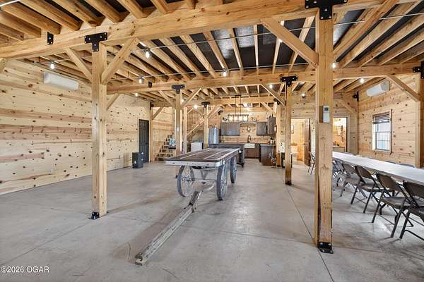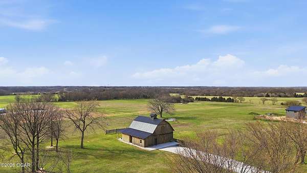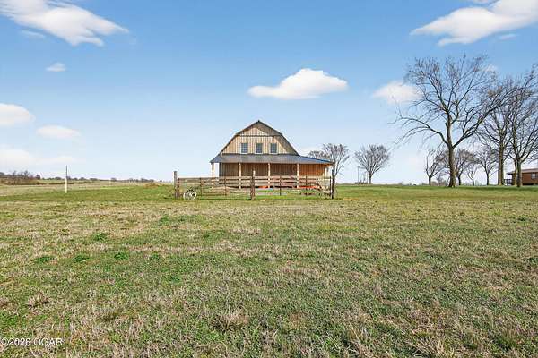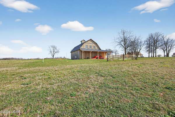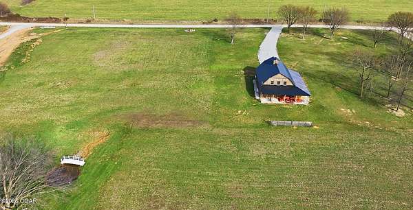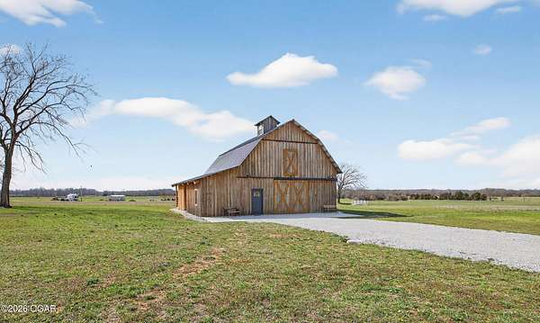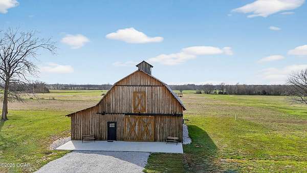 Fall in love with this 1 1/2 year old beautiful barn style home/event venue/restaurant or other income producing dream on 4 acres m/l. Located @ 20 miles from Stockton lake, & centrally located only minutes from Nevada, Lamar, & El Dorado, MO. This an ideal location to be close to amenities, yet far enough to enjoy nature for the perfect wedding or special day. Better yet, make it your own vacation get away or full time home! The quality finishes found throughout this property are amazing! The open floor design welcomes family/friends to gather while enjoying the excellent craftsmanship. Local Ozark lumber, rough-cut from the Amish mill, was placed on the exterior. Local pine was used on the interior walls & vaulted ceilings, along with modern lighting & wood beams to create a country fresh feeling throughout. You'll love cooking in the kitchen w/modern stained concrete counters, custom cabinetry, farm style apron sink, stainless appliances & a perfect rolling island to provide flexibility. One bedroom with walk in closet is present & a 2nd non-conforming bedroom is ready to be finished, if desired. The open living/family area allows the space to be flexible. On a beautiful day, open the barn door and flow out onto the concrete patio for family/friends to mingle, or seal it up forever. On the 2nd floor, a one of the kind great room is present to allow for more options. Create a lovely master suite, or an impressive conference room with views for miles! The space allows for beautiful natural light, vaulted ceiling & a barn cupola sky light which adds an amazing wow factor! Efficient Heating & air mini splits are in place for year around comfort upstairs & down. Venture outdoors to find a concrete floor lean-to on the west side of the barn for covered parking or use as a beautiful seating space to watch the sunset on your perfect day. Amble across the charming bridge at the cozy pond & sit on the tree swing to take in the serene, peaceful, views. (An Additional 3.5 acres & home may be purchased at additional expense. See other listing for more details of the addtl acres.)