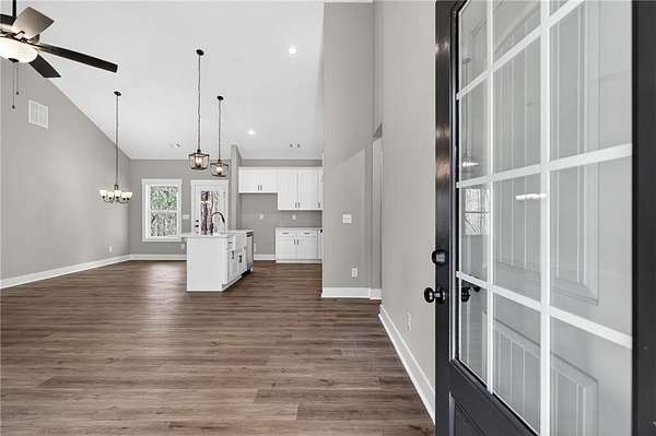 Construction has just begun on this spectacular new Craftsman-style ranch, perfectly situated on a private, level, tree-lined 3-acre lot. Thoughtfully designed with an open floor plan, this home offers luxury, comfort, and style throughout. The spacious layout features upgraded black exterior windows, a vaulted family room, four bedrooms, and two full baths, making it ideal for both everyday living and entertaining. At the heart of the home, the gourmet kitchen includes a large island, farmhouse sink, stainless steel appliances, upgraded soft-close shaker cabinetry, granite countertops, a breakfast area, and a generous pantry. The kitchen opens to the expansive family room, highlighted by a beautiful stone fireplace. The private primary suite is a true retreat, featuring a spa-like ensuite bath with a stunning tiled shower and custom glass door, double vanities, a freestanding soaking tub, and a large walk-in closet. This split-bedroom plan offers two spacious secondary bedrooms with ample closet space and a beautifully finished full bath. The oversized fourth bedroom or bonus room provides flexible space for a home office, guest suite, or additional bedroom. Enjoy peaceful mornings on the charming front porch and unwind on the covered back porch overlooking the serene, wooded 3-acre lot. Standard features include luxury LVP flooring in the kitchen, living room, and entry, plush carpet in the bedrooms, granite countertops, a tiled shower, oil-rubbed bronze fixtures, and durable vinyl siding. With 3 private acres and no HOA, this property offers a rare combination of privacy, flexibility, and convenience. Ideally located just minutes from Cedartown, Rockmart, Aragon, and Rome, it is the perfect place to build your dream home in a peaceful setting. Please note that the interior and exterior home photos are of the floor plan only and do not show the actual home. The lot and drone photos reflect the actual property. Ask about available incentives when using the seller's approved lenders. There is still time for buyers to select their interior and exterior finishes and personalize their dream home.