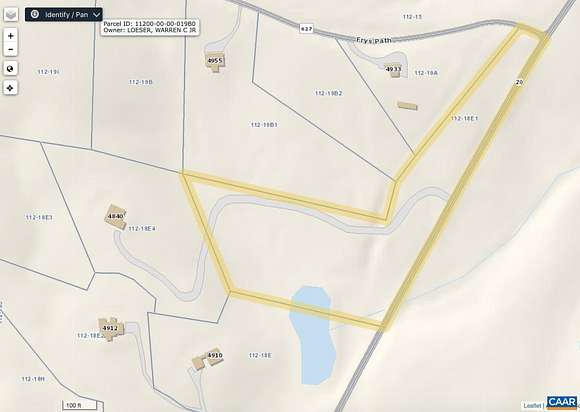 5+ acre lot in Albemarle county with public road frontage and a pond! Two theoretical building sites, subject to approval. Shared access is already cut in and graveled - brand new gravel. Pond shares a boundary line with the adjoining parcel as well. This property is just 15 minutes to Wegman's and 19 minutes to downtown Charlottesville, or 10 minutes to both Walnut Creek & Scottsville. Bring your builder! Note surrounding land under Conservation Easement.