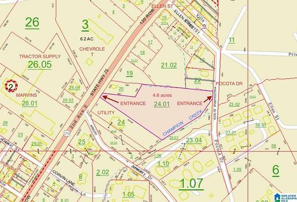 Here is your opportunity to purchase Commercial Property with 4.6 acres (per county tax records) of land in the rapidly growing City of Oneonta, Alabama. Vacant and level land for starting a business that has room to grow. Road frontage on Hwy 75 (2nd Ave E) and a back entrance off of Pocota Dr. Easily seen from Hwy 75 and this location is within a hour to Birmingham and just over an hour to Huntsville. Located across from Marvins and Tractor Supply you have excellent exposure along with a heavily traveled highway. Sewer is available
