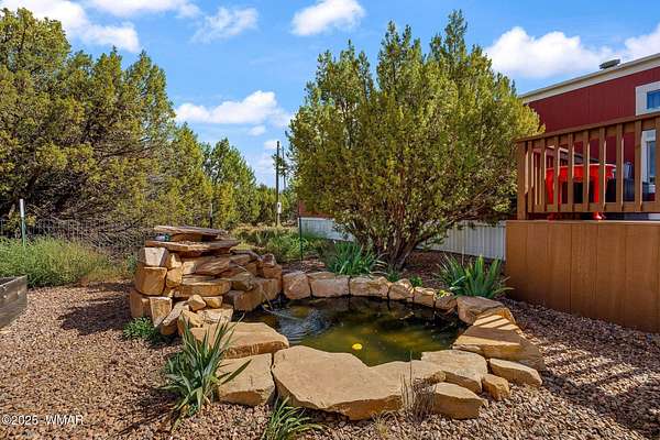 PRICE CHANGE Beautiful 1.73approx. acres with a 2 bedroom/2 bath 2020 home to enjoy year-round or seasonally.The 2 master suites allow for a flexible living situation with plenty of room to spread out or have a quiet dinner at home.Wood vinyl flooring gives natural tones throughout the home for elegance and easy clean up. The amazing front yard garden with lush green grass, happy plants and concrete patio to expand for large gatherings. The brand-new back porch to soak up the sun and fresh air while enjoying the soft sounds of the stone water feature.Raised garden beds to give anyone a green thumb and fully fenced for the kiddos or your furry family members to keep them safe. Maintained roads with an easy drive for shopping, dining and all the activities of the town. Shows pride of owners