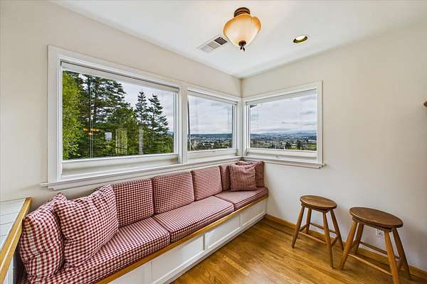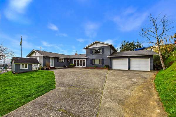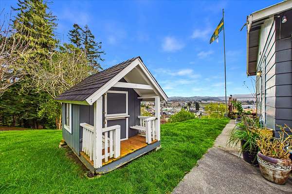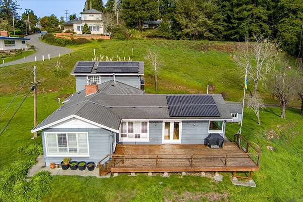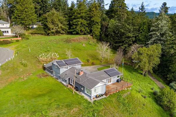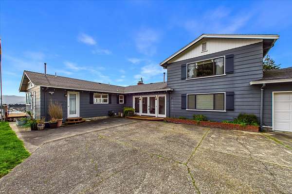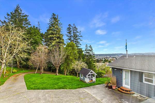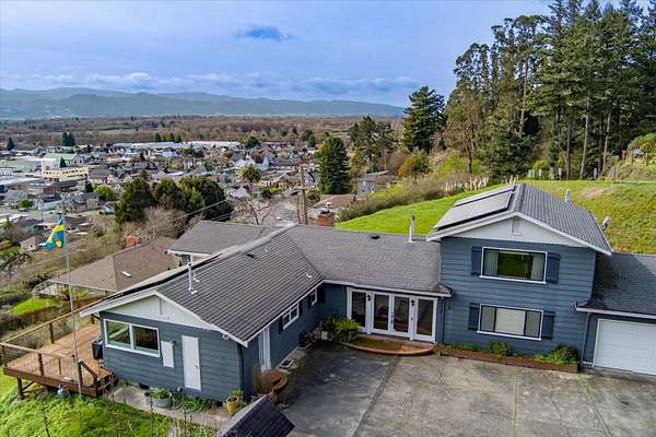 Fall in Love with this custom ranch style home nestled into the hills above Fortuna with expansive city views spanning just over 2 acres with two parcels included. Built in 1954, this home has been remodeled and added onto over time, to make the perfect combination of functionality, comfort and light. The kitchen is well equipped with a wide kitchen island, and looks through to the dining room, accented by a built in display cabinet, and the living room with fireplace and views to Eel river. Additionally featuring an extra cozy den space and oversized primary suite above the double car garage. A big flat grassy yard space as well as sloped terrain, the property wraps around neighboring land creating some privacy and a feeling of being on top of the town but still right in it, and within close proximity to the fairgrounds.
