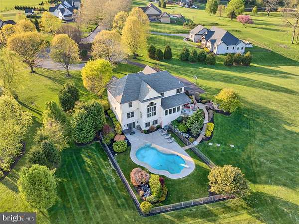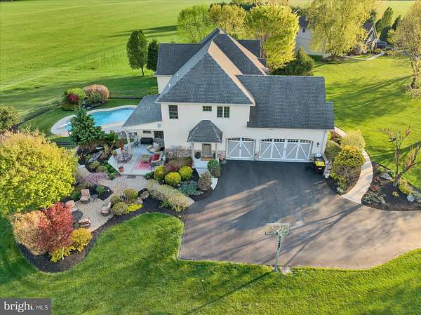 In a word...Impressive! This spacious 4-bedroom, 2-story home sits on a picturesque 2.5-acre lot in the Schuylkill Valley School District and offers the perfect blend of elegance, comfort, and outdoor enjoyment with an inground heated pool and 3-car side-entry garage. Filled with charm and distinctive architectural details, this home features pillars, vaulted ceiling, catwalk overlooks, and an open flowing floor plan enhanced by an abundance of windows that flood the interior with natural light. The inviting main level begins with an open foyer and continues into a living room and dining area accented by a tray ceiling and wainscoting. The dream kitchen is sure to impress with a seated center island, beautiful cabinetry, and all appliances included, while opening seamlessly to the dramatic two-story family room with gas fireplace and the bright and cheerful sunroom. A private home office, convenient laundry room with sink, cabinetry, outside access, and a half bath complete the main floor. Upstairs you'll find 4 generously sized bedrooms, all with ceiling fans, some with built-ins, along with 3 full baths. The spacious primary bedroom suite is your own private retreat featuring a sitting area, luxurious bath, and oversized walk-in closet. The second bedroom offers its own en-suite bath and walk-in closet, while another bedroom also includes a walk-in closet. Two separate overlook areas add to the home's open and airy design. The professionally finished walkout lower level adds to the already spacious sq ft with a large rec room, ideal for entertaining or family time plus room for an exercise or play area plus an additional half bath. Step outside to your own private oasis with a fenced-in heated inground pool featuring underwater lighting, a large patio, and scenic views of the surrounding open acreage. Professional landscaping, a long driveway, and exceptional curb appeal complete this outstanding property. Schedule your private showing today and make this summer the one you enjoy your very own pool.